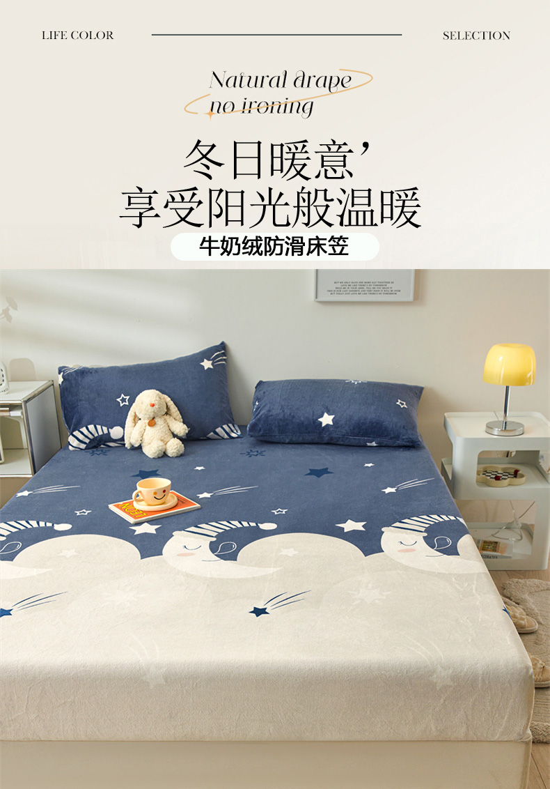 牛奶绒加厚床笠法兰绒床罩套珊瑚绒床垫保护套防滑固定全包床单月亮宝宝