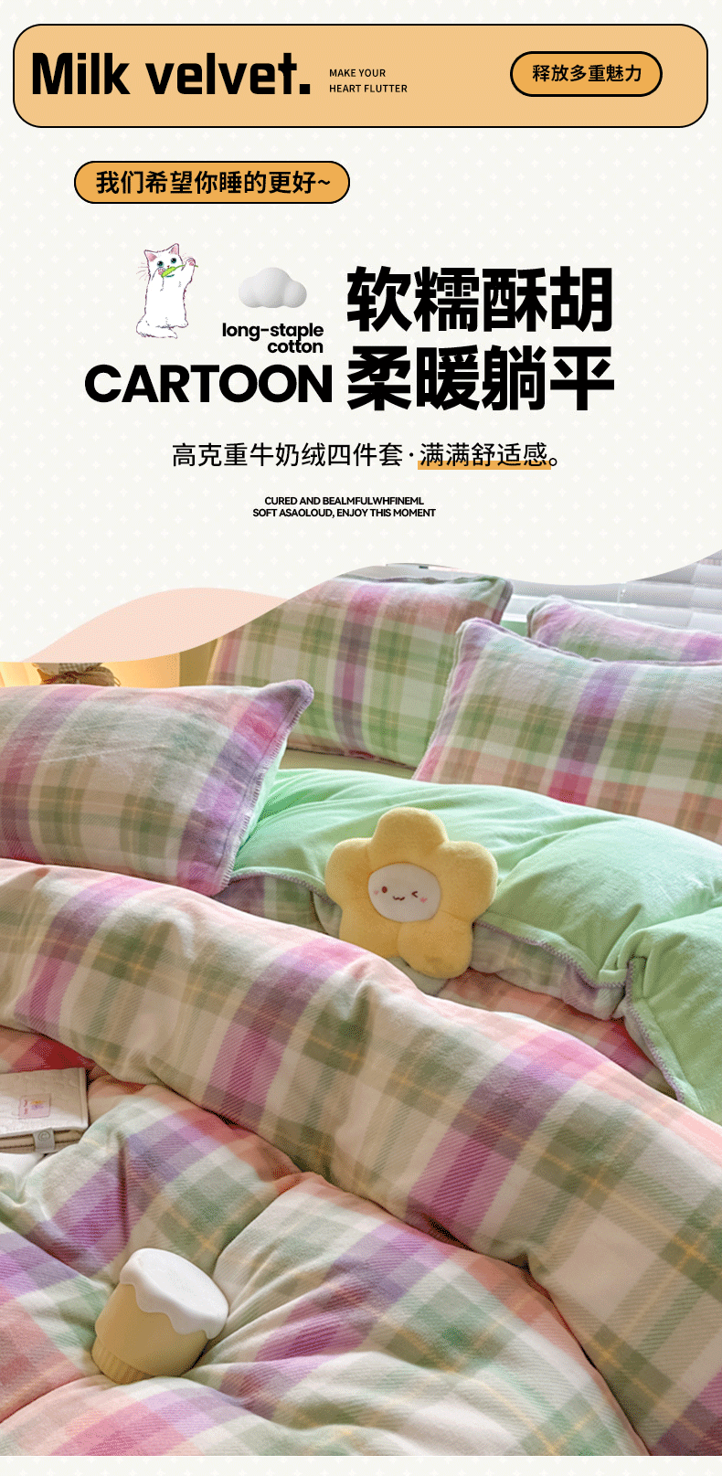当前位置: 91家纺网 > 商品网购 > 床品套件 > 四件套 > 牛奶绒四件套 > 安哆啦 2024新款高克重牛奶绒混搭四件套 紫韵格