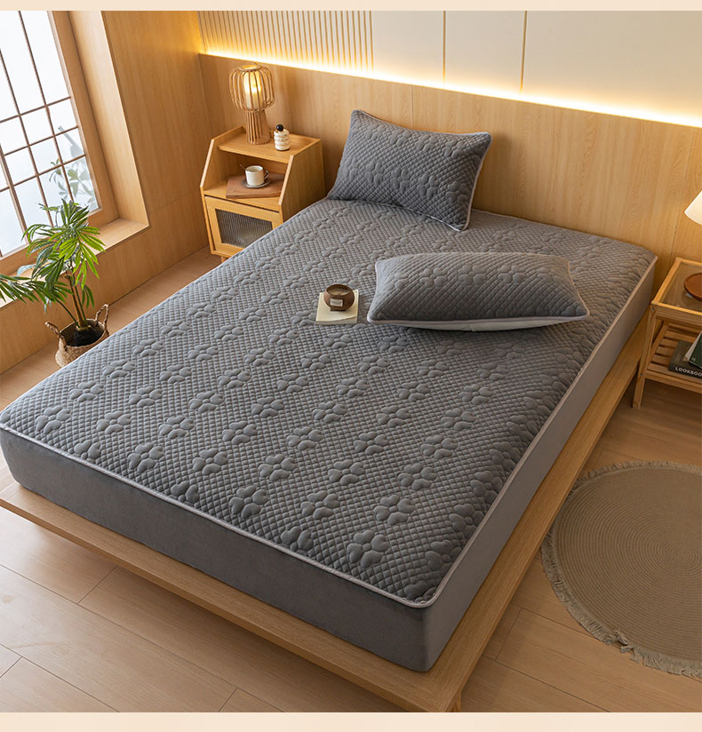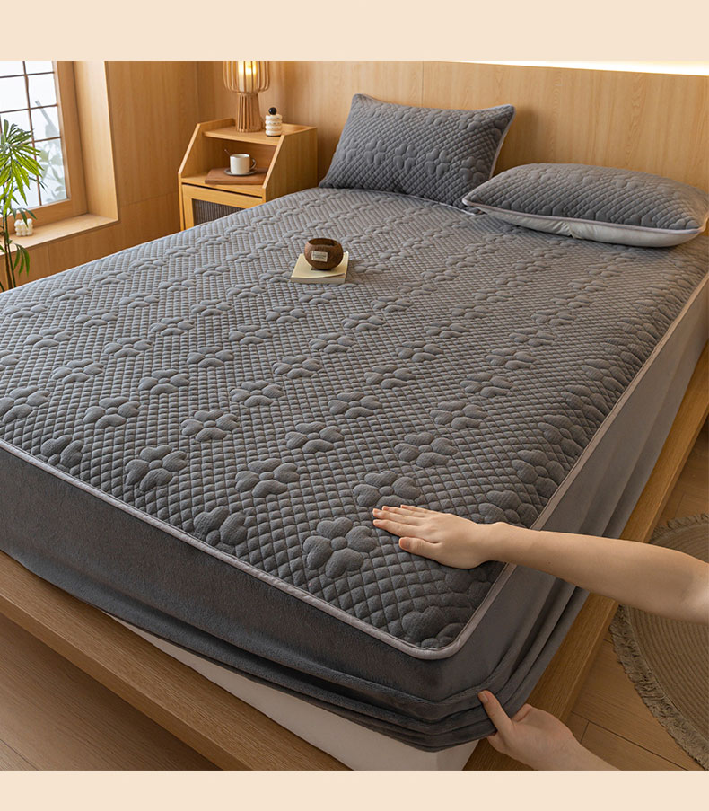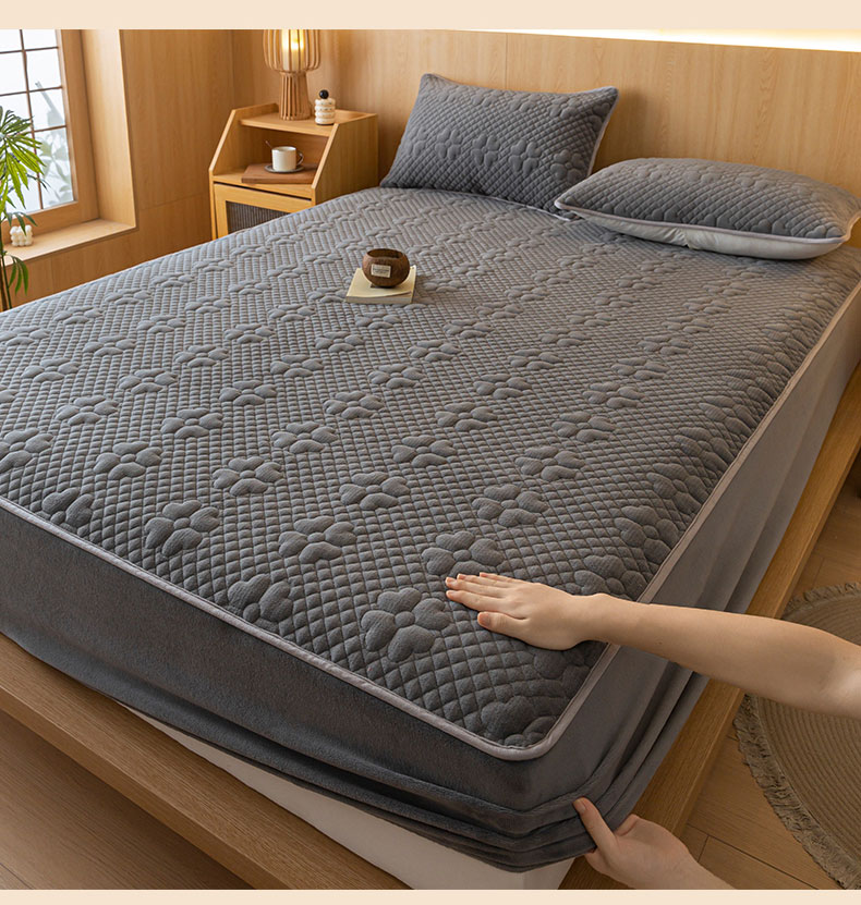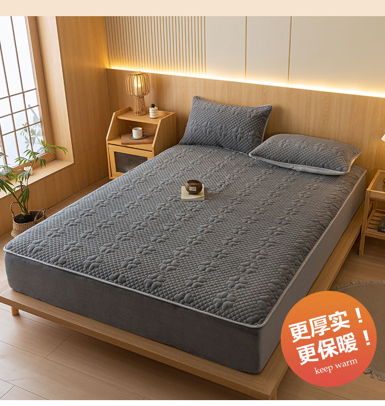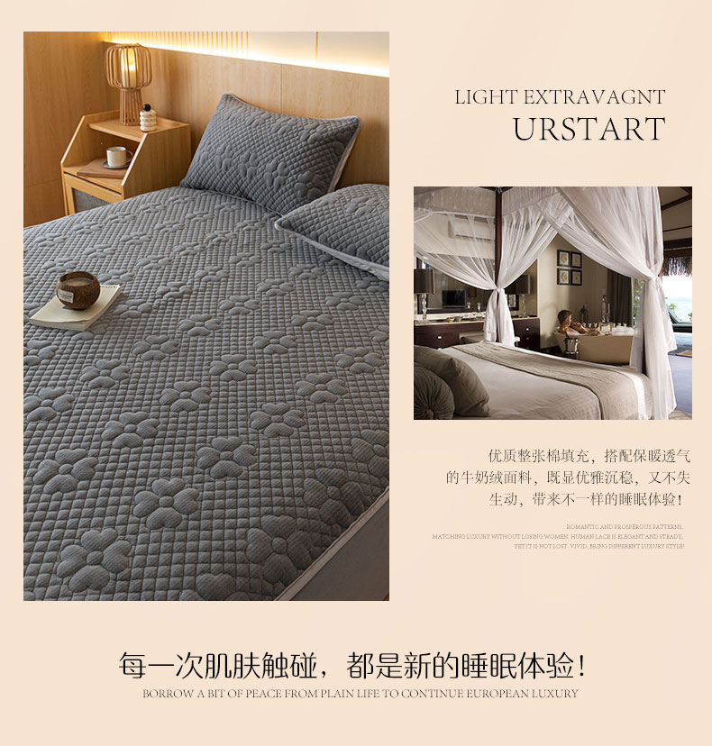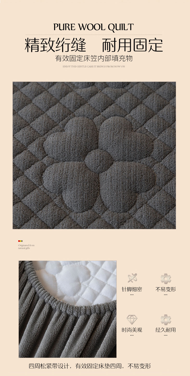 给笠 2023新款A类夹棉牛奶绒床笠三件套 花漫系列 牛奶绒-花漫雅灰
