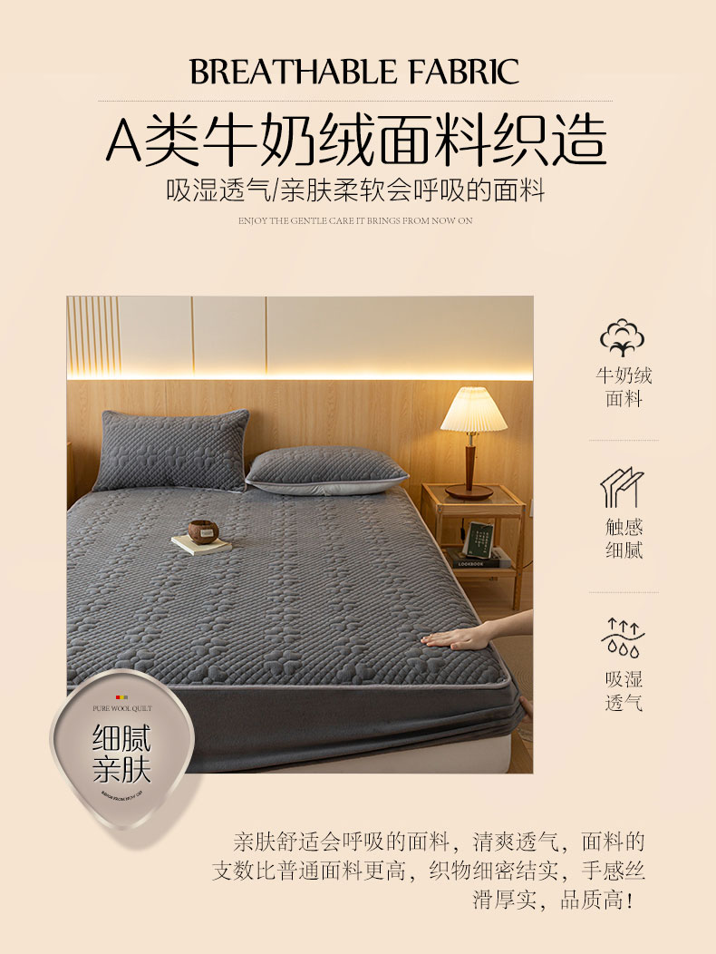 (总)给笠 2025新款A类超声波夹棉床笠,灰色,卡其,米白