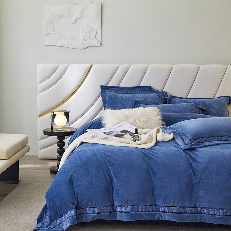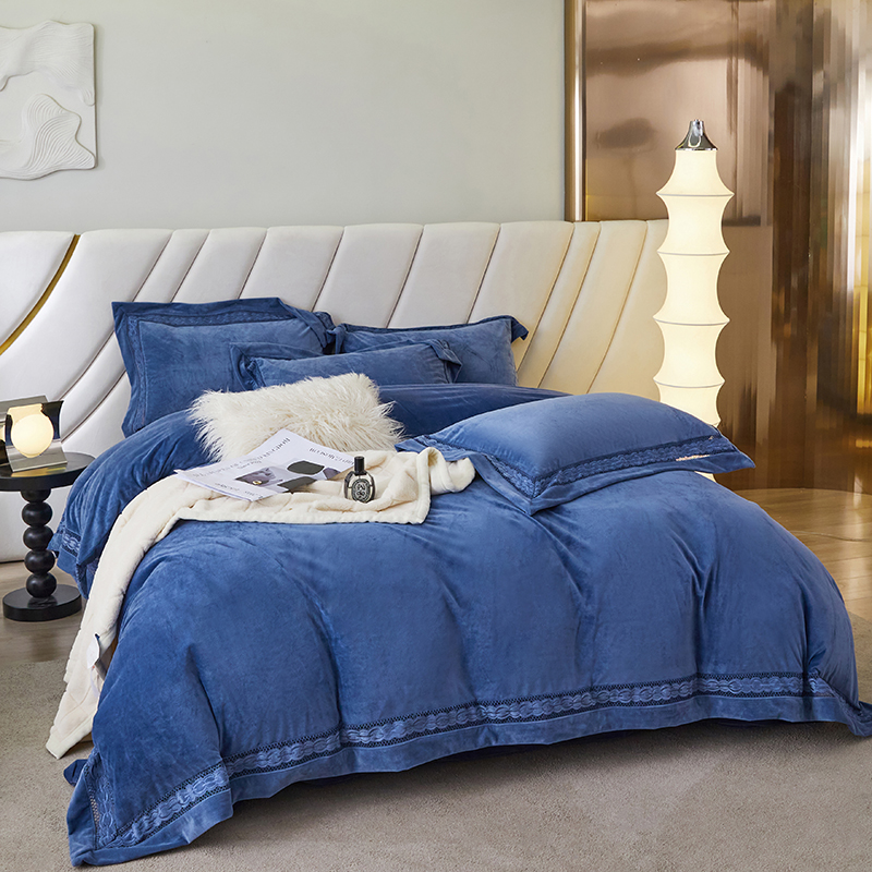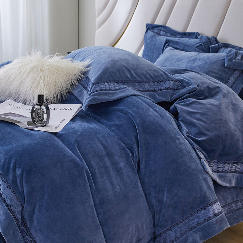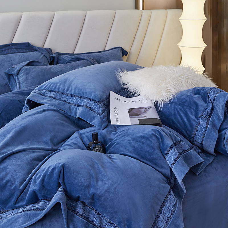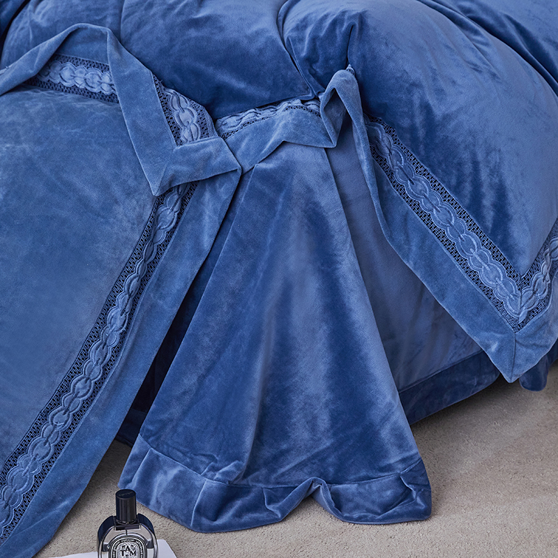 榻尚2023新款婴肤绒镂空设计拼边工艺款四件套-佳梦系列 佳梦-蓝