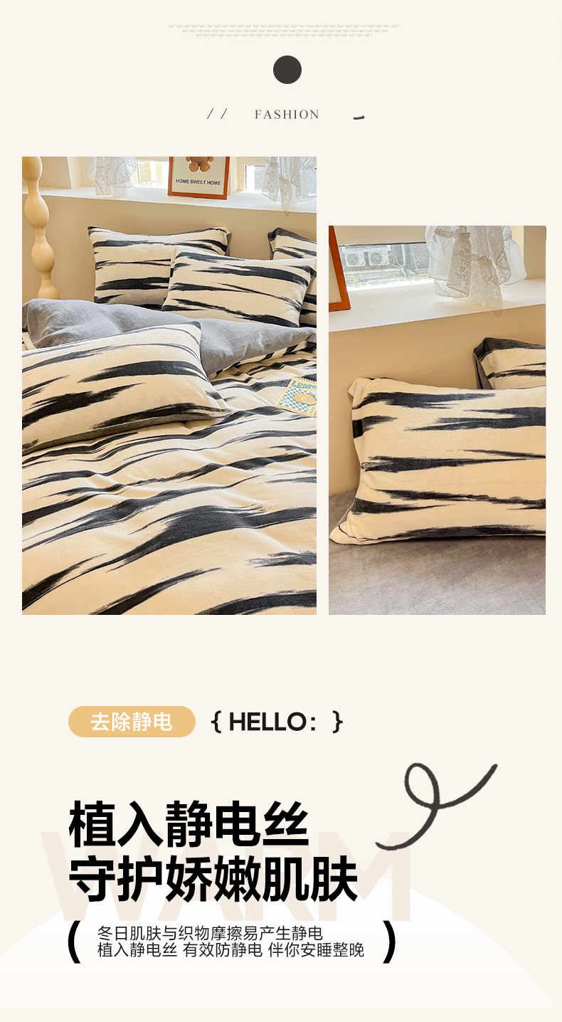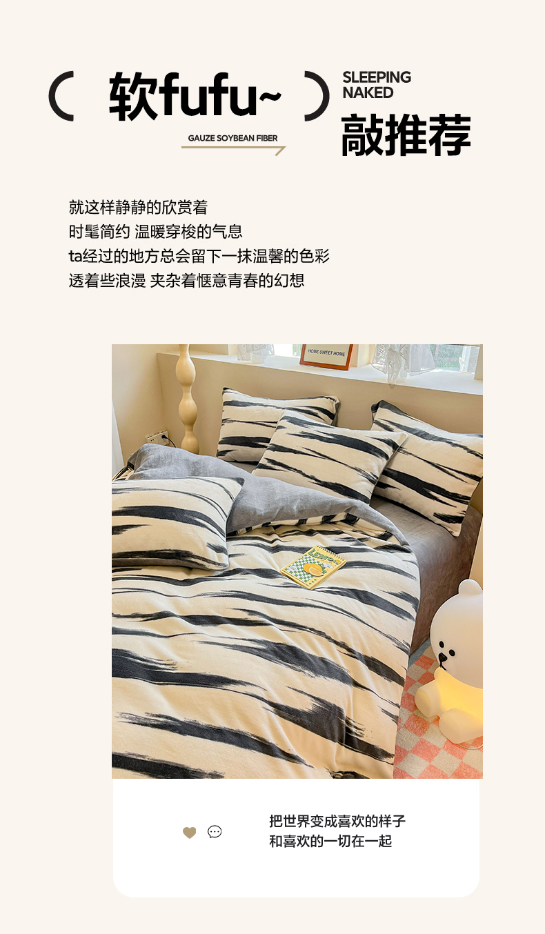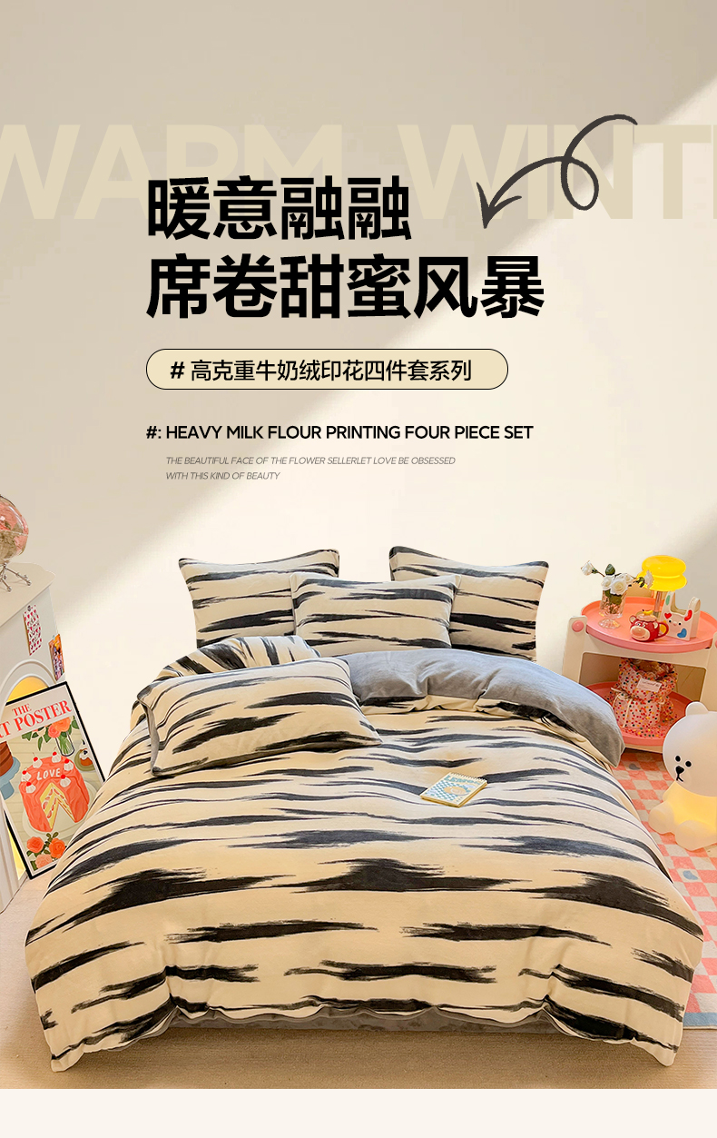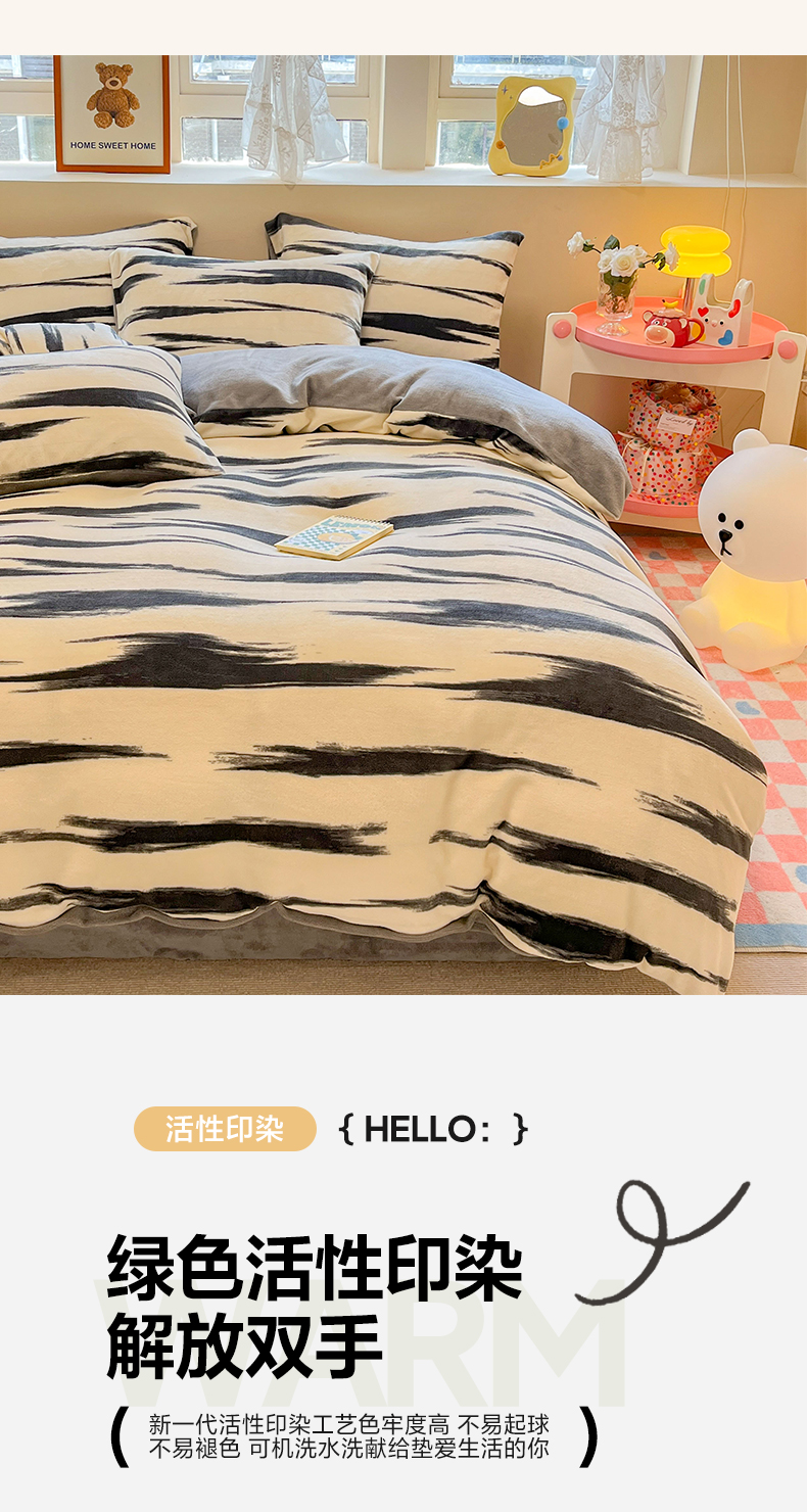 沐辰 2023新款牛奶绒印花四件套 原野