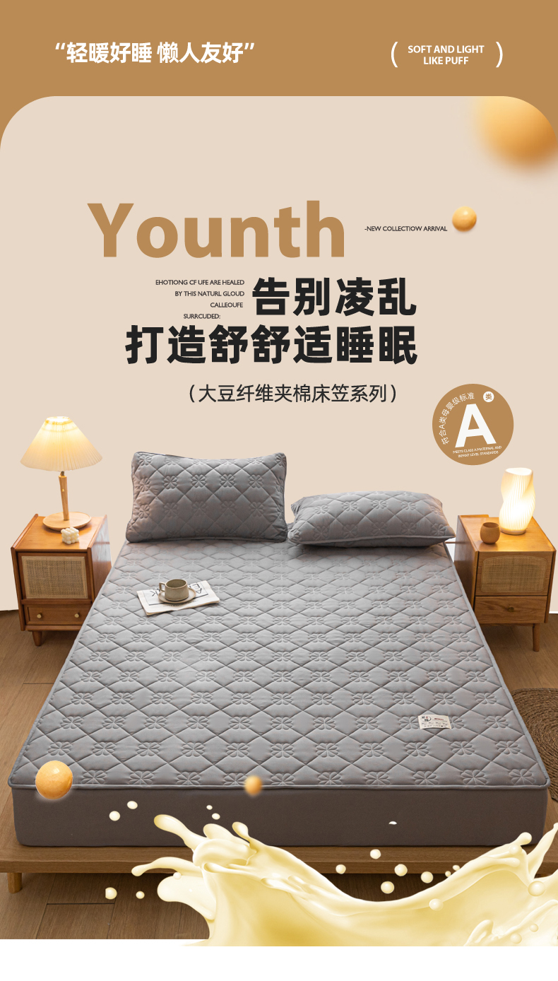 (总)米粒家纺 2023新款A类大豆纤维夹棉床笠系列,格调-白,格调-粉,格调-卡其,格调-蓝,格调-浅灰,格调-深灰,幸运花-白,幸运花-粉,幸运花-卡其,幸运花-蓝,幸运花-浅灰,幸运花-深灰