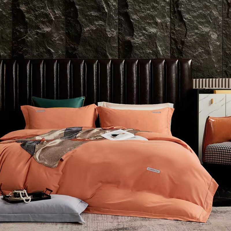 玖玖爱 2023新款120支新疆长绒棉绣花四件套-简尚系列 丽桔橙