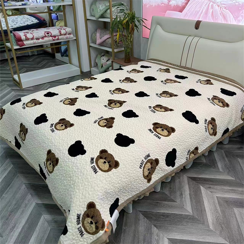 家维 2025年新款牛奶绒床盖花边款床盖 可爱熊
