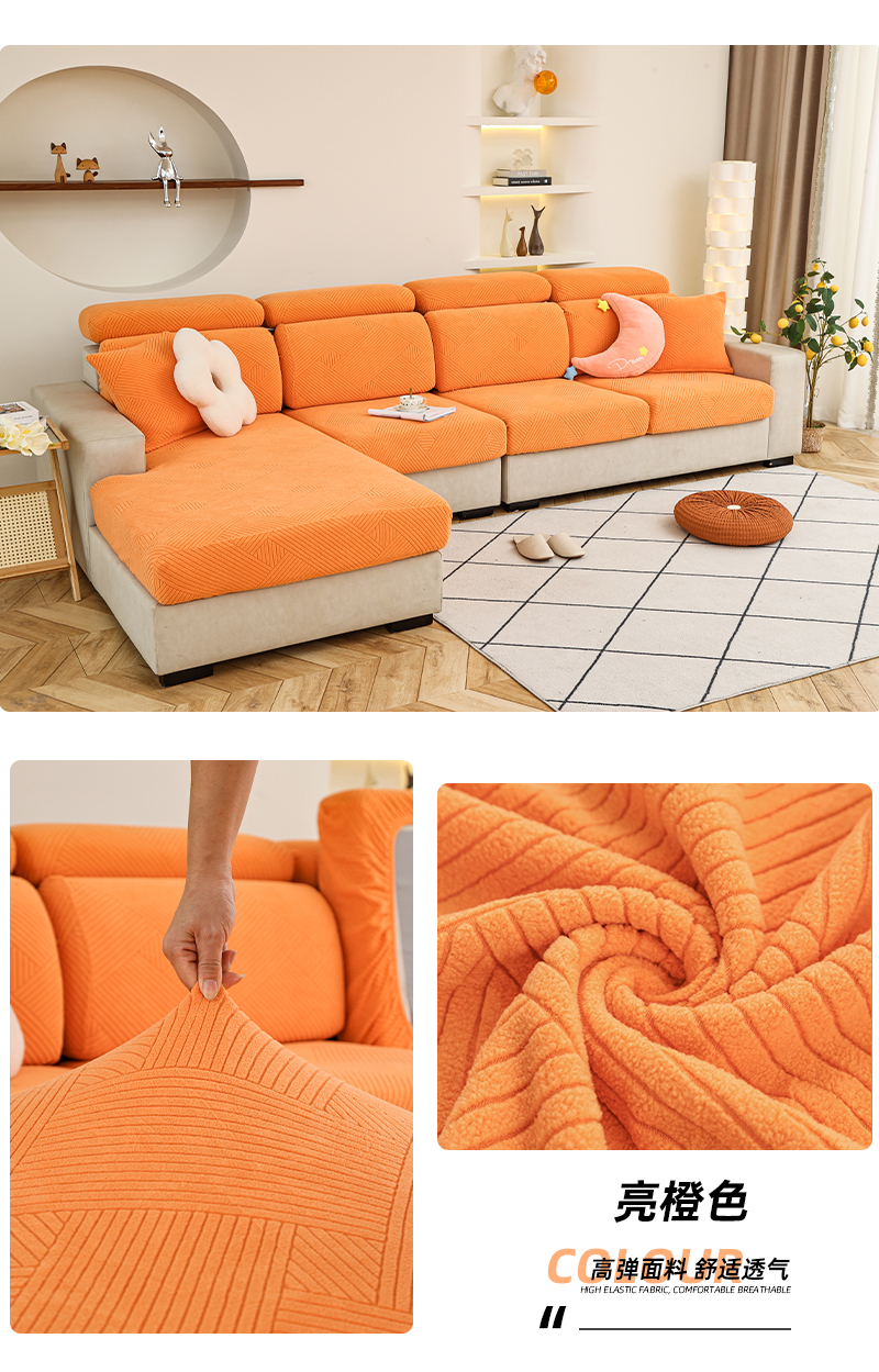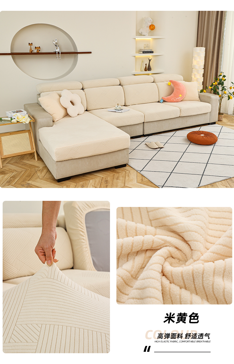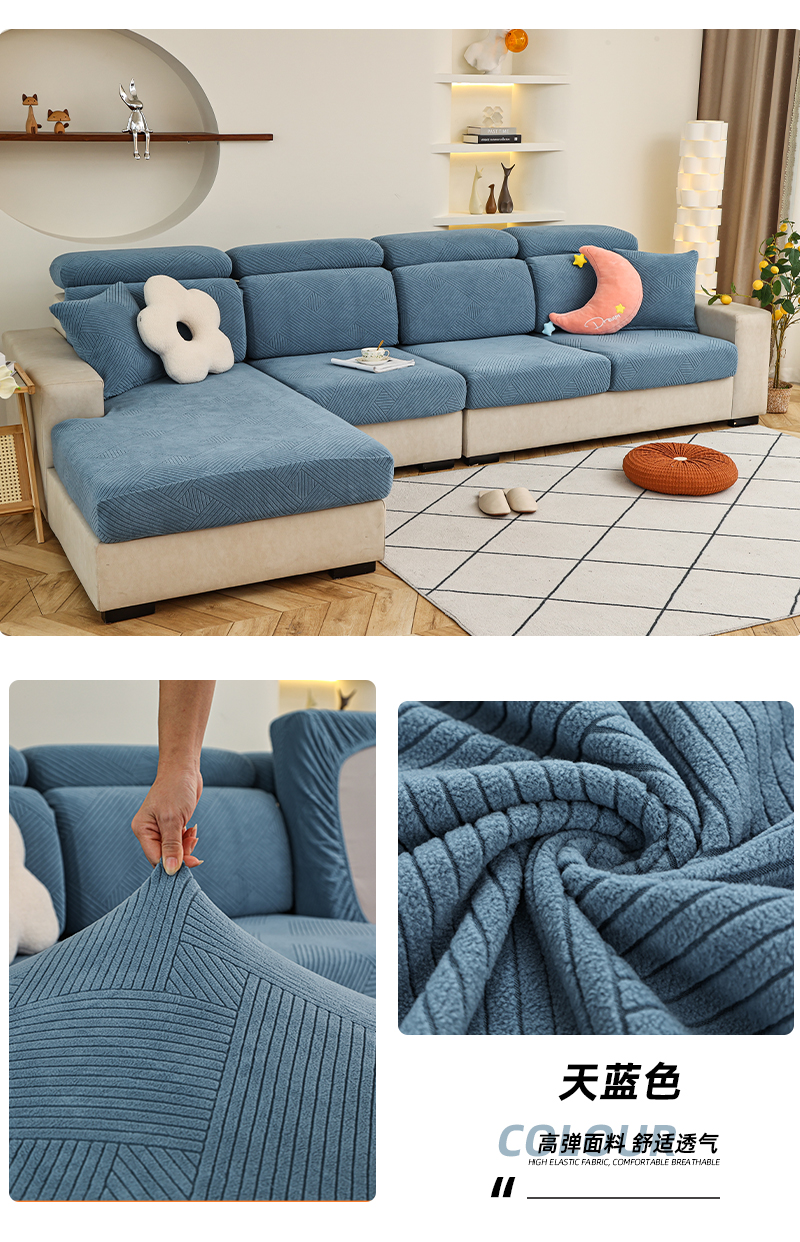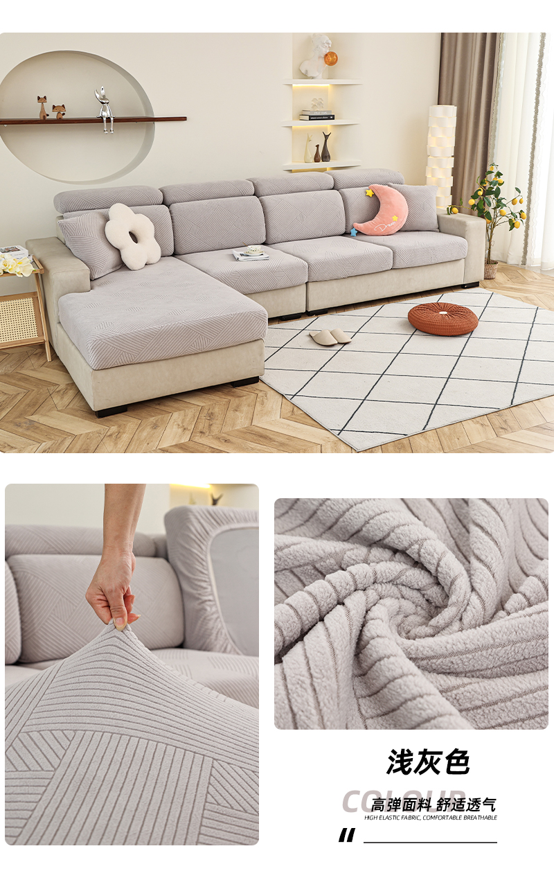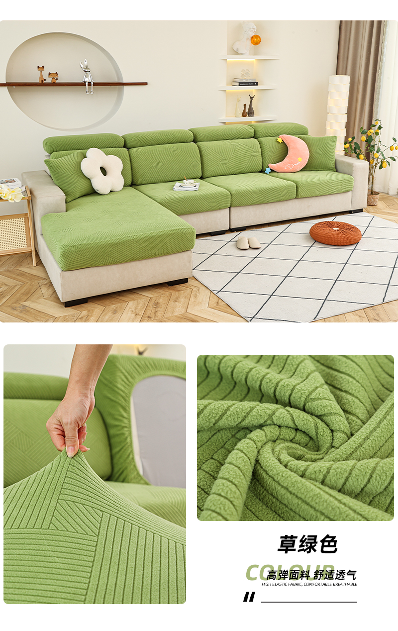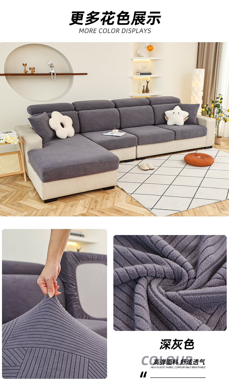 (总)天下布艺 2023新款纯色摇粒绒升级北欧百褶裙摆工艺通用沙发笠—斜格裙边,1,2,3,4,5,6,7,8,拼色1