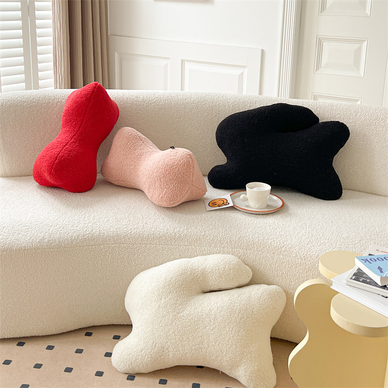 (总)918拾朵家居 2025新款网红客厅沙发装饰抱枕,半边绒圆枕(白),半边绒月亮,波浪纹长腰枕,立体球球(酒红),扭扭白,狮子圆枕