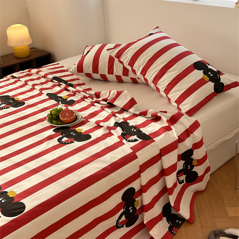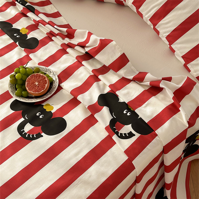商品名称:洋铭区 2023新款全棉单品床单红条小象