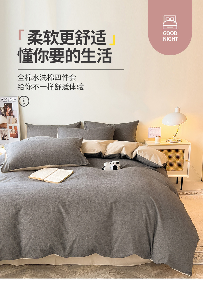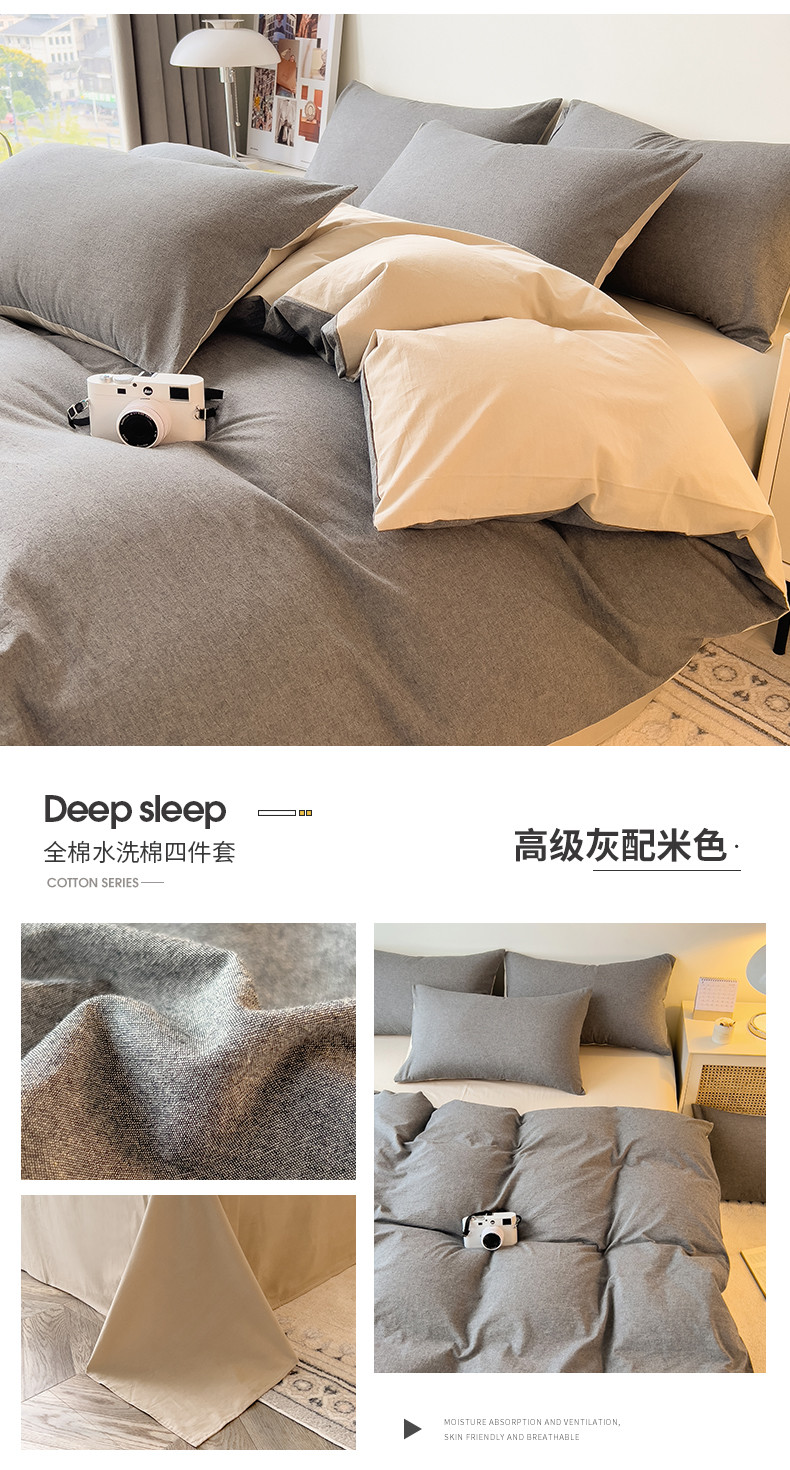 当前位置: 91家纺网 > 商品网购 > 床品套件 > 四件套 > 水洗棉四件套 > 芃成 2023新款全棉水洗棉四件套 高级灰配米色