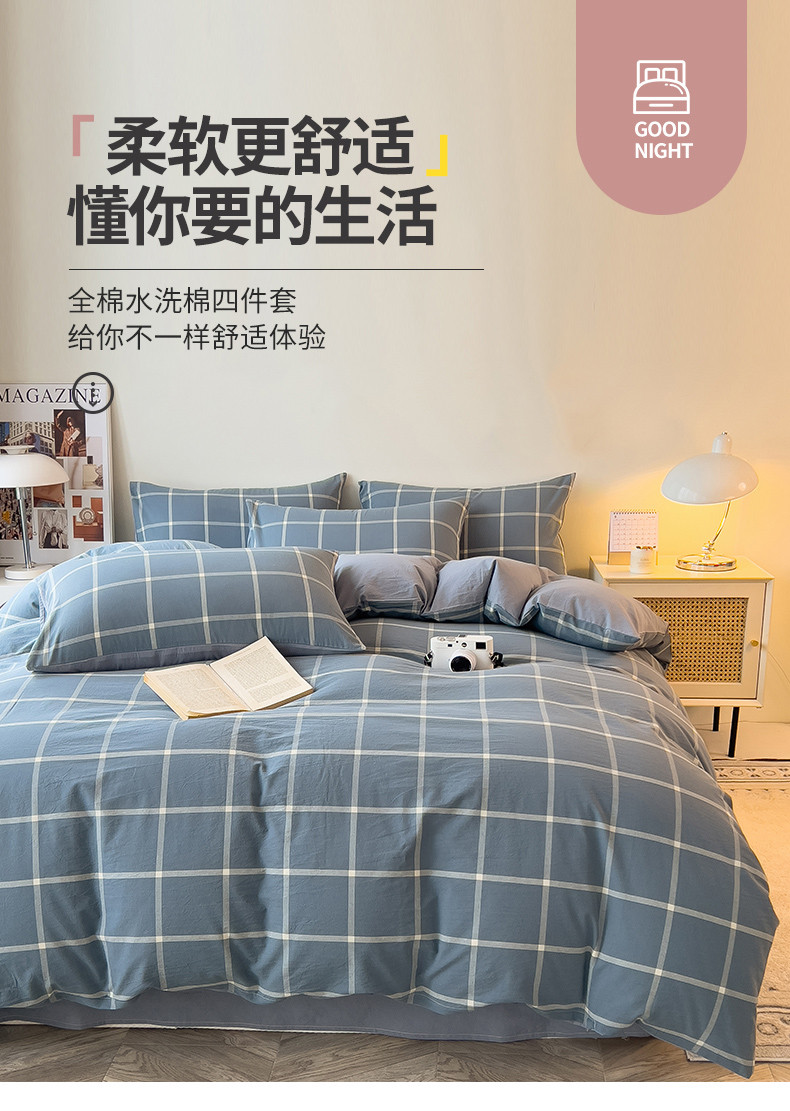 当前位置: 91家纺网 > 商品网购 > 床品套件 > 四件套 > 水洗棉四件套 > 芃成 2023新款全棉水洗棉四件套 米莱蓝