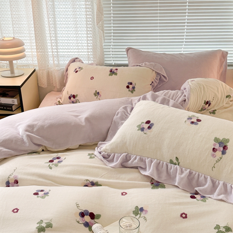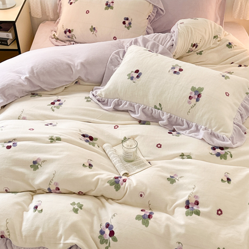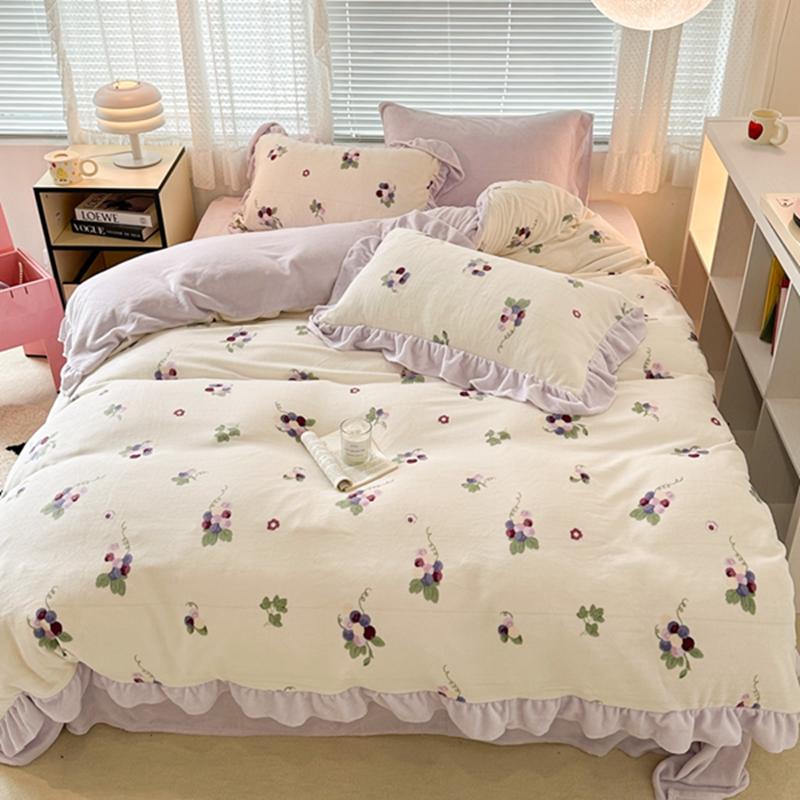 昔可家纺 2023新款花边款牛奶绒四件套 紫色葡萄