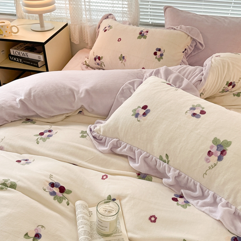 商品名称:昔可家纺 2023新款花边款牛奶绒四件套 紫色葡萄