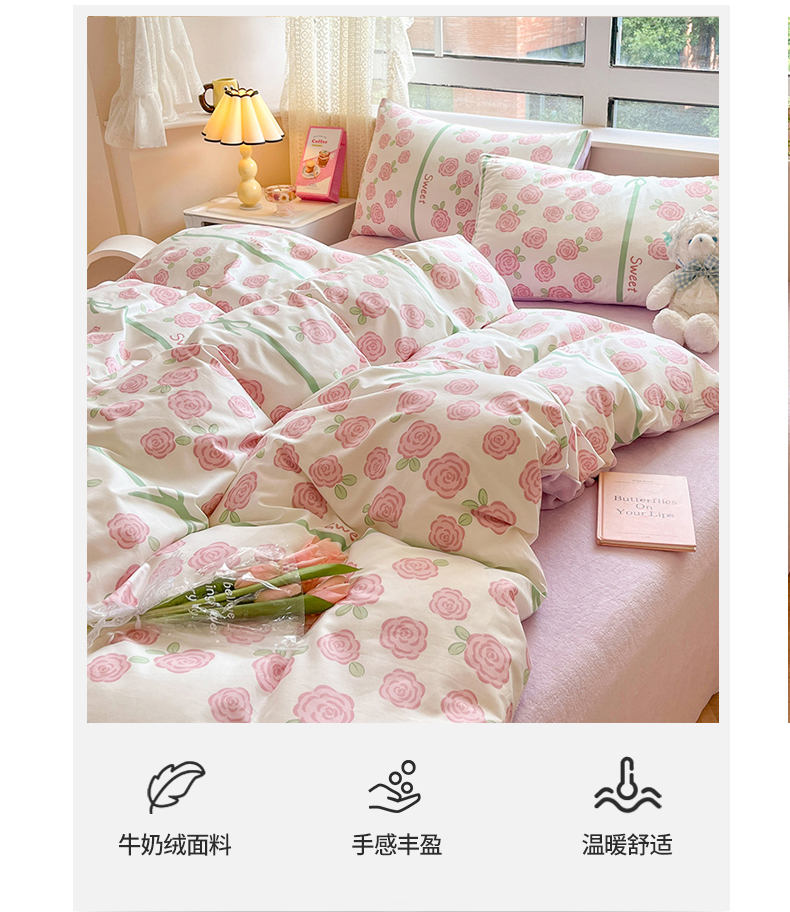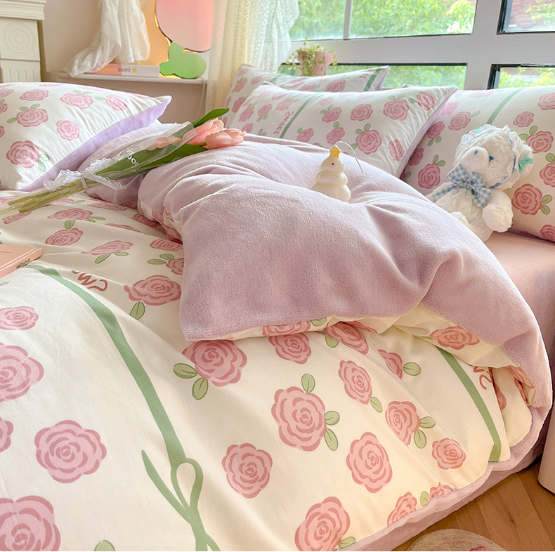当前位置: 91家纺网 > 商品网购 > 床品套件 > 四件套 > 牛奶绒四件套 > 麦伦家居 2023秋冬新品多功能床品全棉加牛奶绒四件套 紫色玫瑰