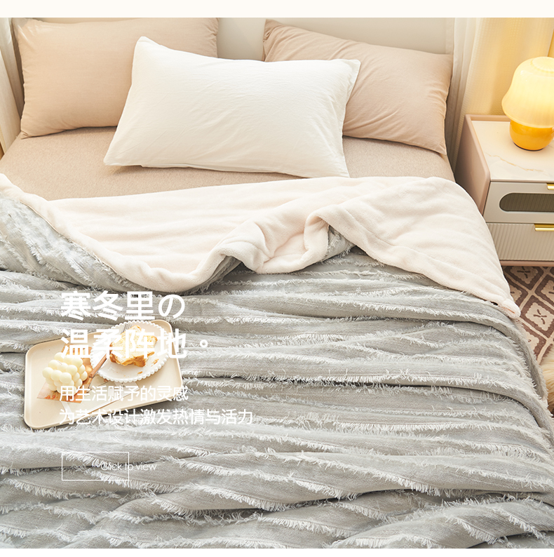 吾诺家居 2023新款流苏绒双层多功能毯 浅灰流苏毯