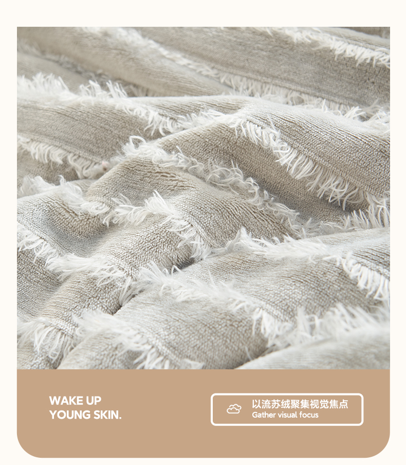 (总)吾诺 手工织带款雕花牛奶绒四件套 工艺款飞边拼角 - 绽放系列,条纹灰,条纹白,叶纹驼,叶纹兰,条纹玉,叶纹灰