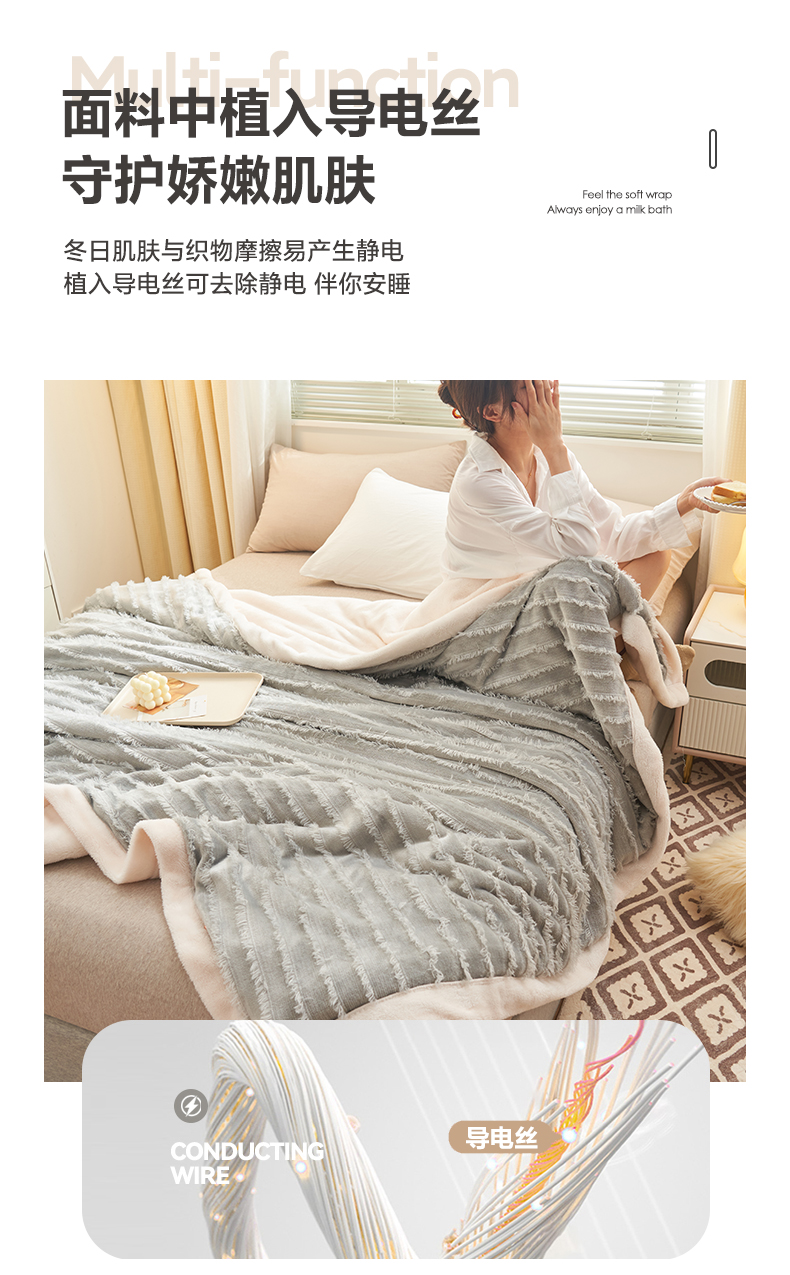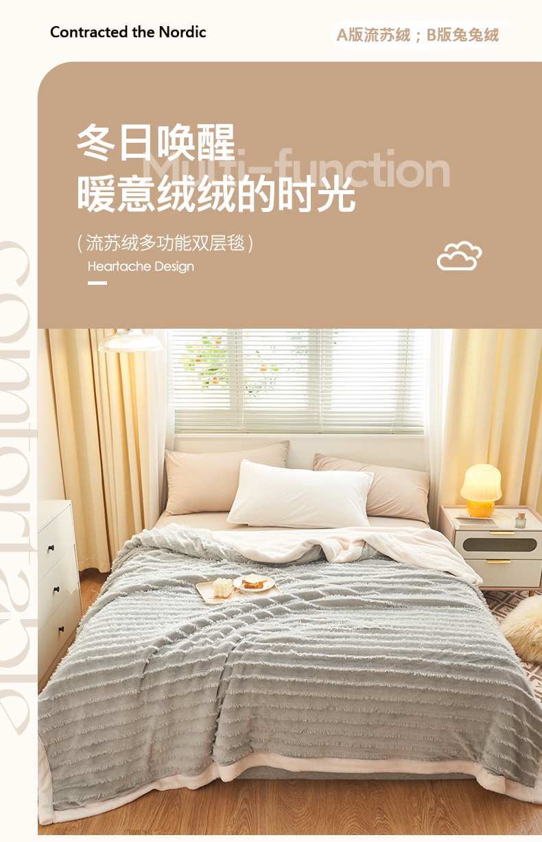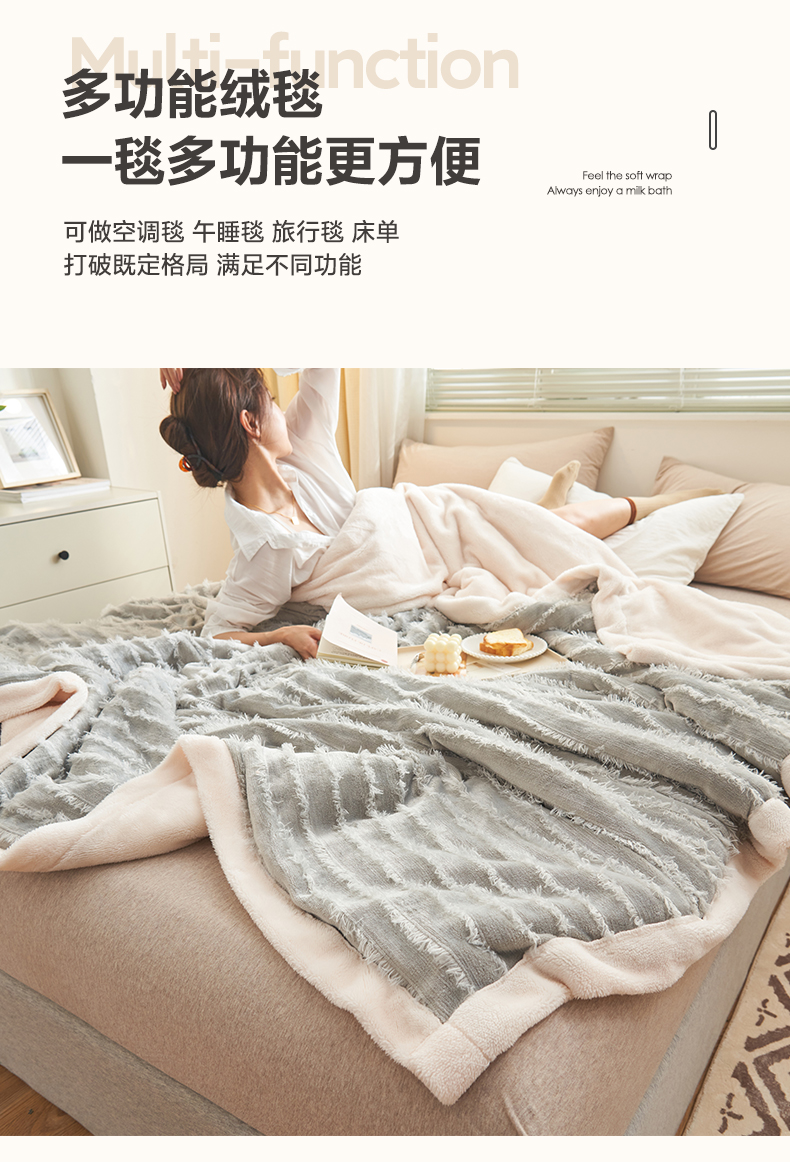 商品名称:吾诺家居 2023新款流苏绒双层多功能毯 浅灰流苏毯
