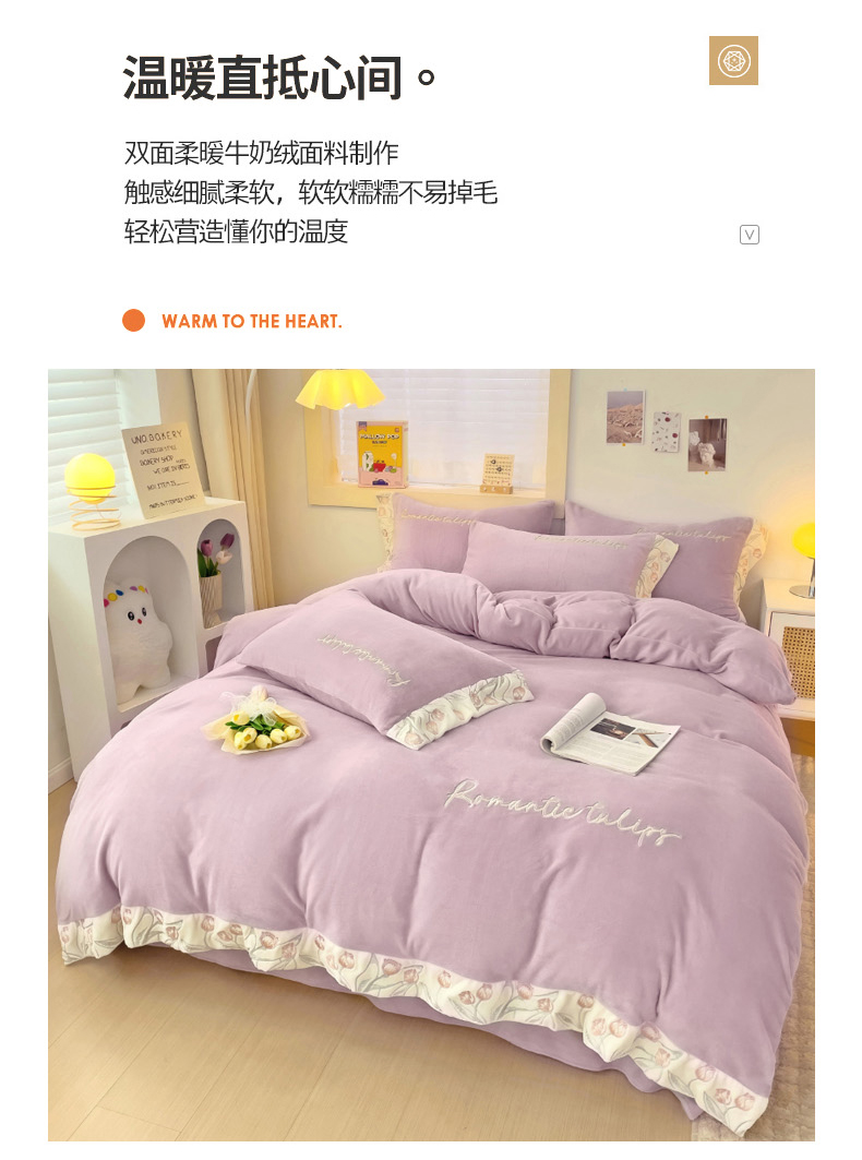 星尚家纺 2023新款230g全消光A类牛奶绒四件套-郁金香 蔷薇紫