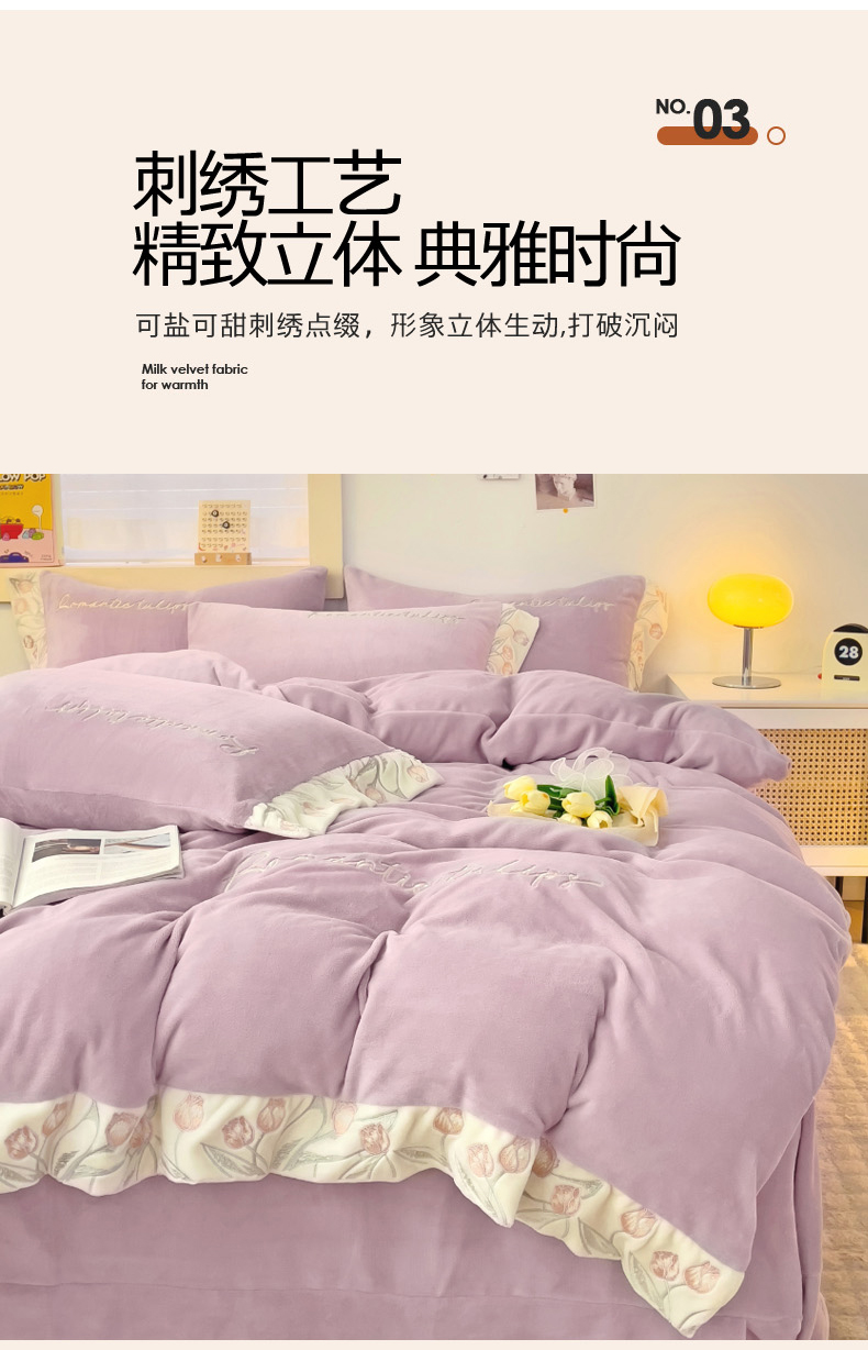 (总)星尚家纺 2024新款全消光A类230g牛奶绒刺绣保暖绒四件套-郁金香,淡雅粉,梵星绿,高级灰,蔷薇紫,婴儿蓝,樱花粉