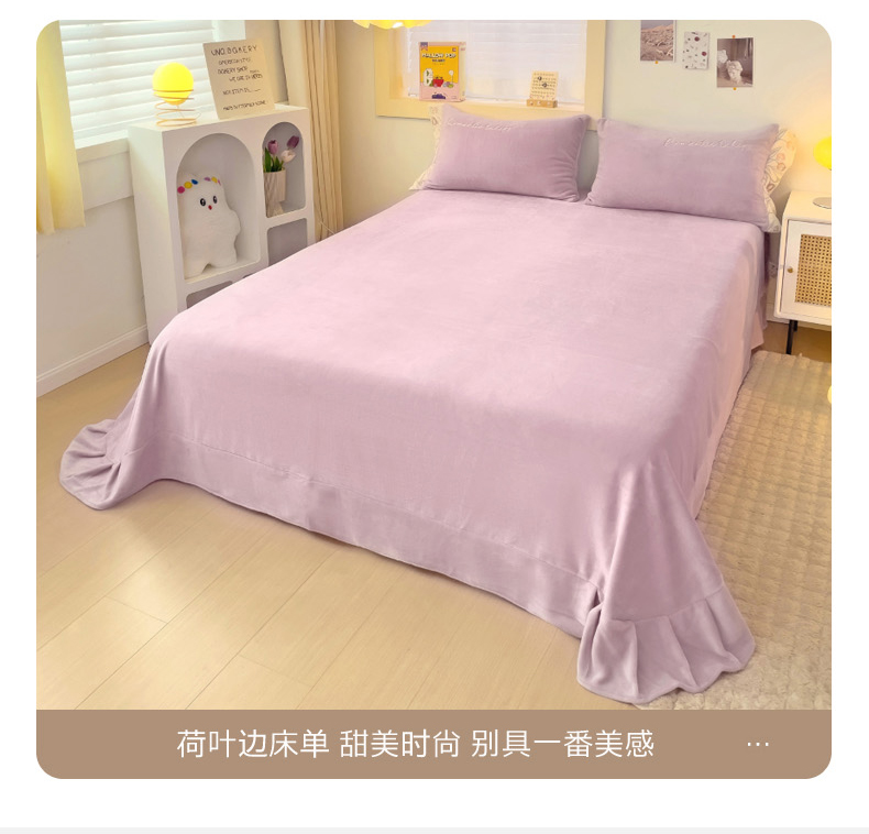 (总)星尚家纺 2024新款加厚保暖全消光牛奶绒夹棉床裙四件套-玫瑰之恋,粉玉,寐紫,浅蓝,水绿