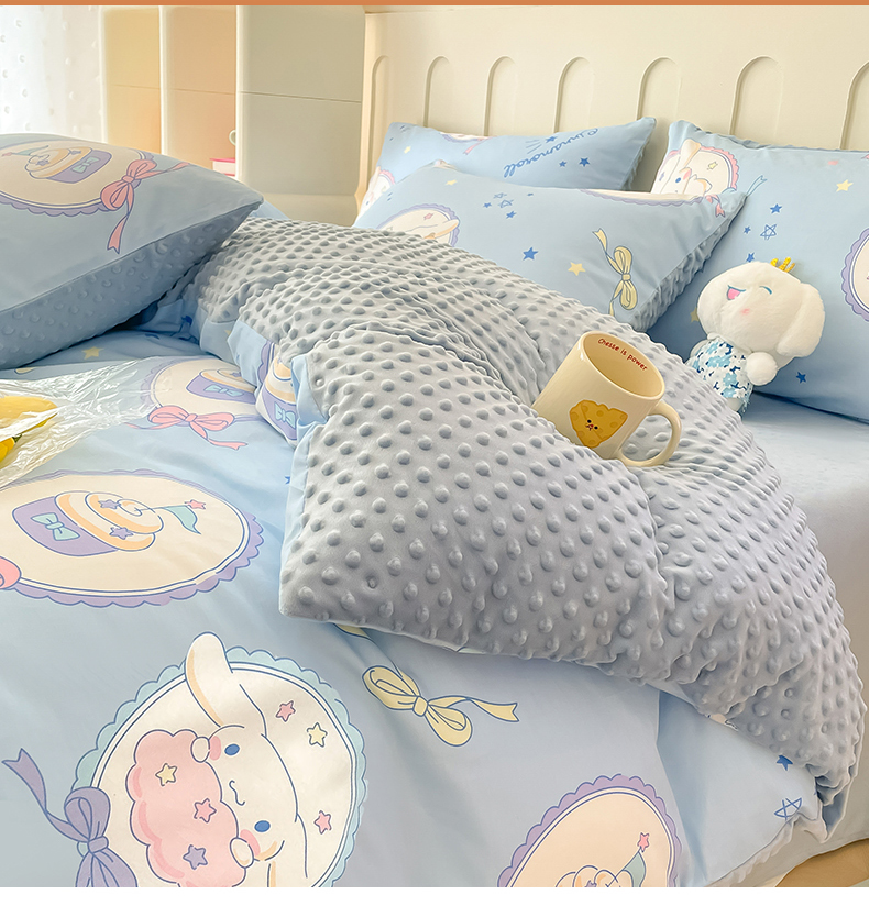 (总)麦伦家居 2025秋冬新品多功能床品全棉+豆豆绒四件套卡通小清新系列,迪迪龙,好友鸭,花韵抹茶,浣花,杰克熊,乐园小马,清茶小熊,童趣米,星星小象蓝,云朵腊肠狗,粉色玫瑰,可爱小兔-米黄,木马小熊蓝,拾趣爱宠,星星木马