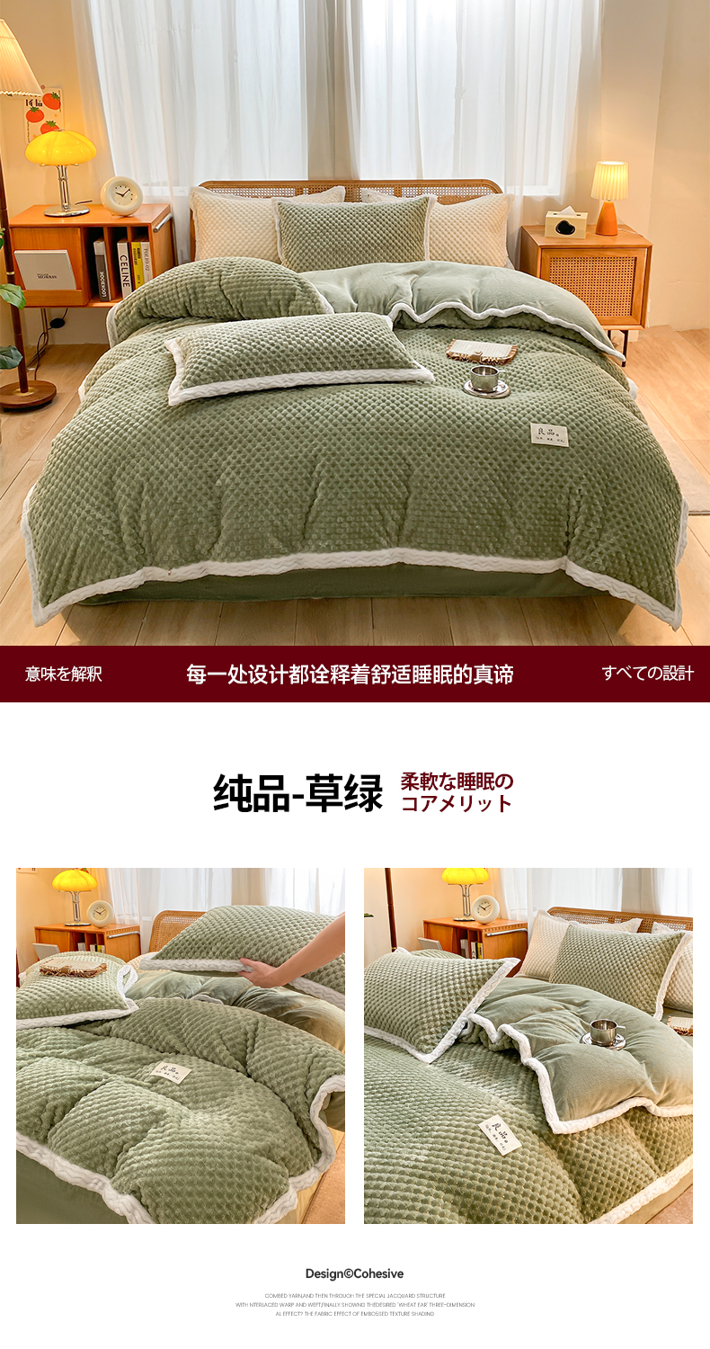澳梵家居 2023新款无印风豆豆绒牛奶绒包边工艺四件套 纯品-草绿