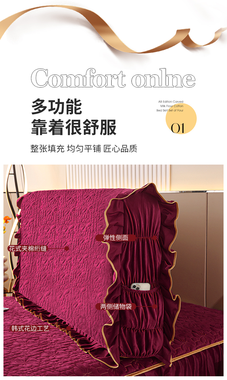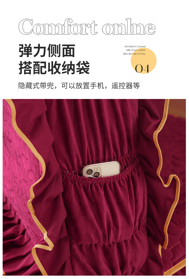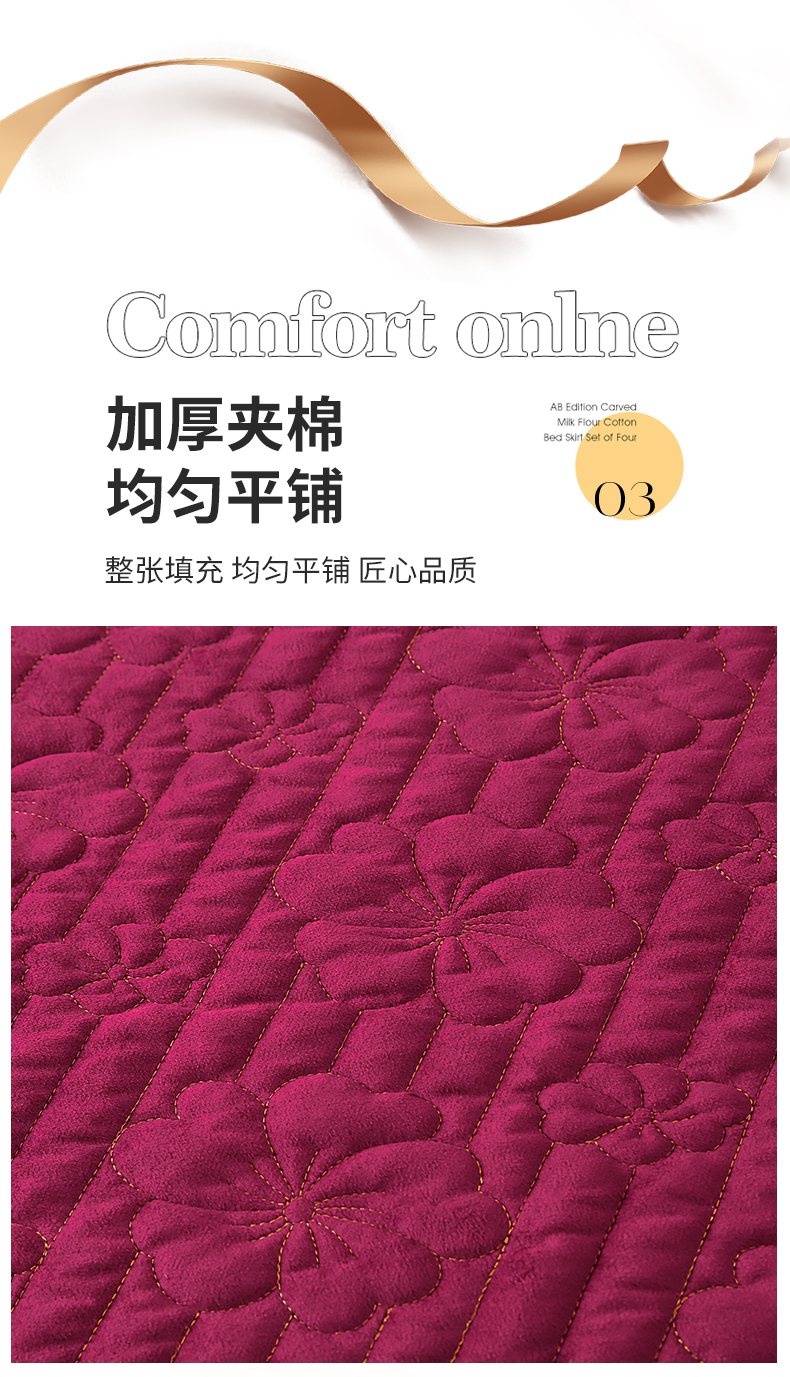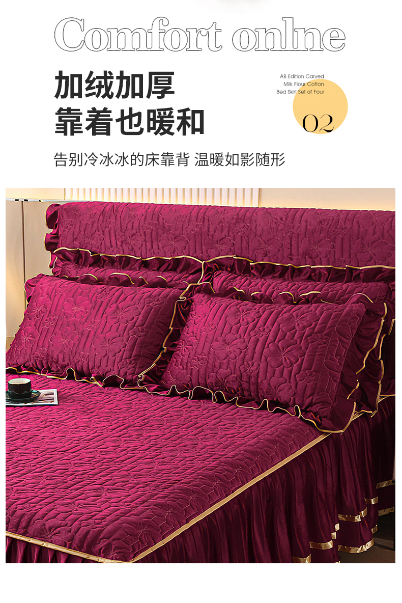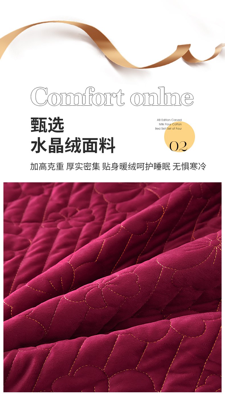 (总)屹成家纺2025新款水晶绒夹棉绗缝床裙四件套(塞纳河畔)四件套起售价不低于230元,大红,豆沙,翡翠绿,粉玉,橄榄绿,蔚蓝,银灰