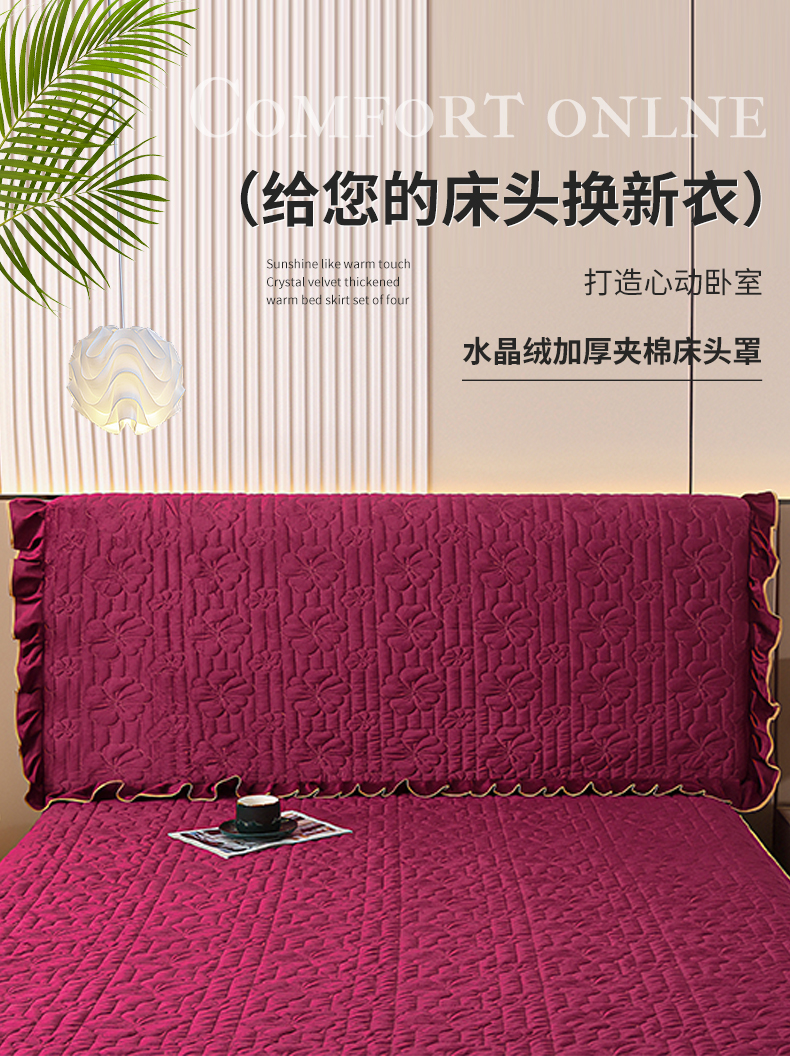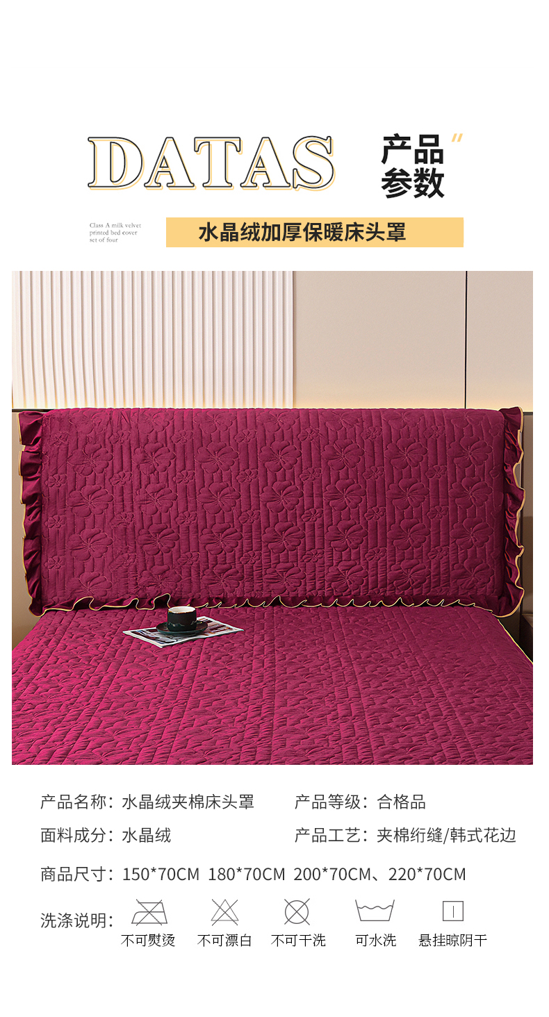 商品名称:新款水晶绒加厚保暖床头罩-盛世花颜 盛世花颜-酒红