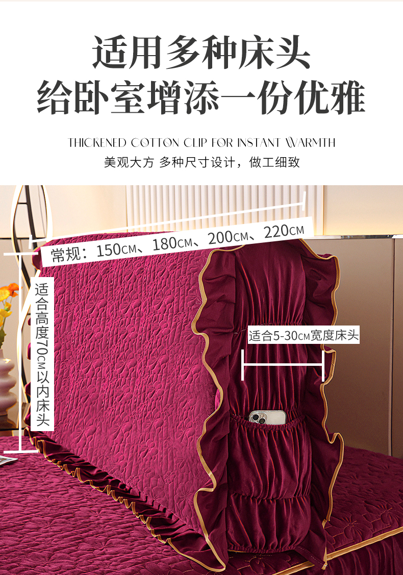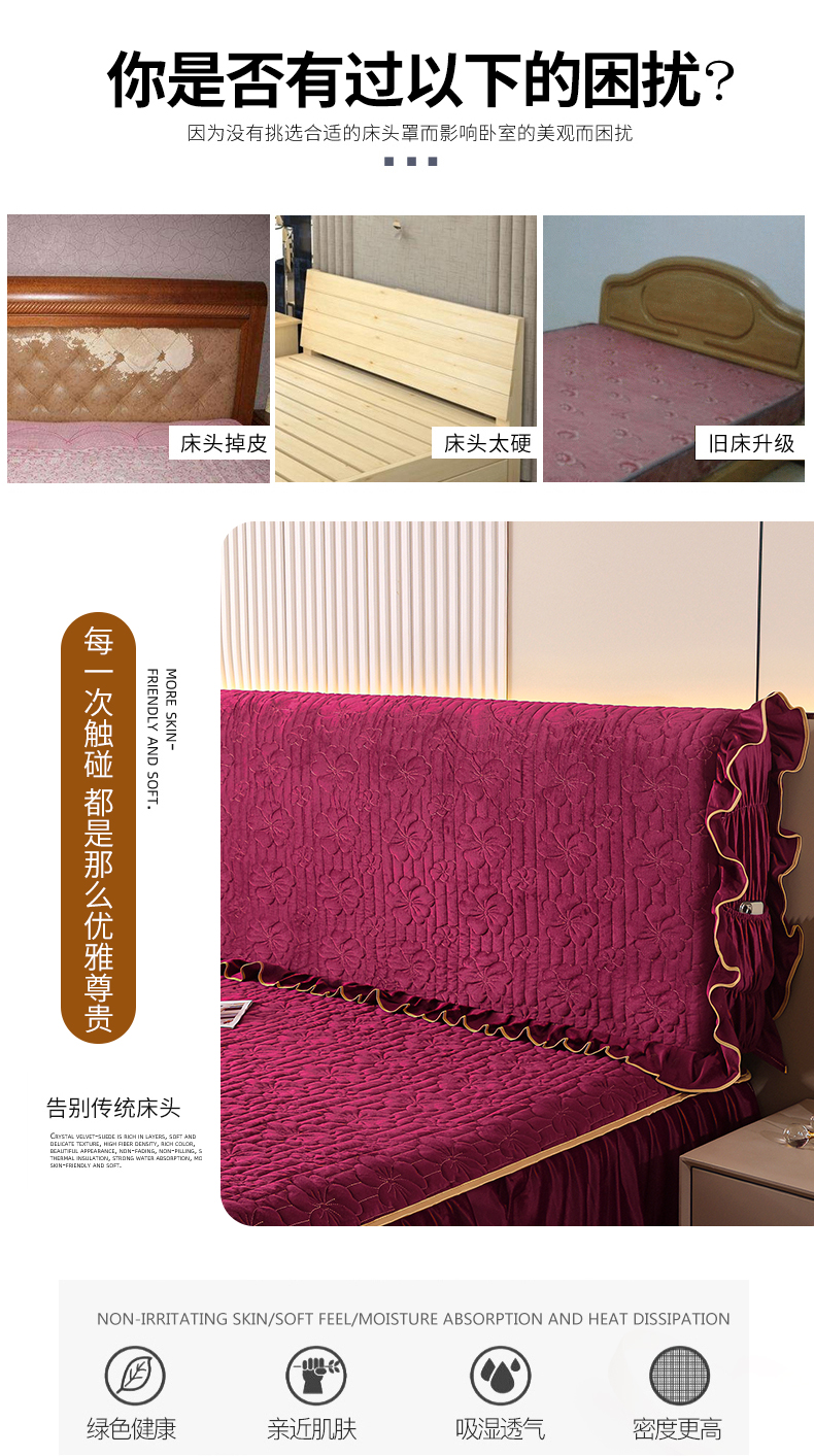 新款水晶绒加厚保暖床头罩-盛世花颜 盛世花颜-酒红