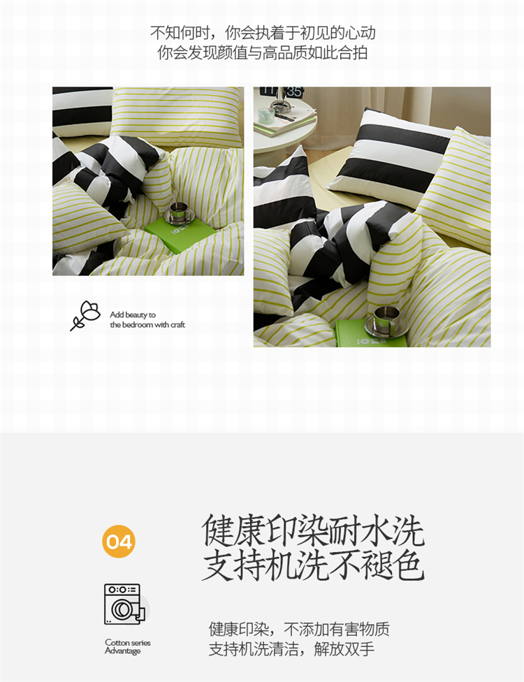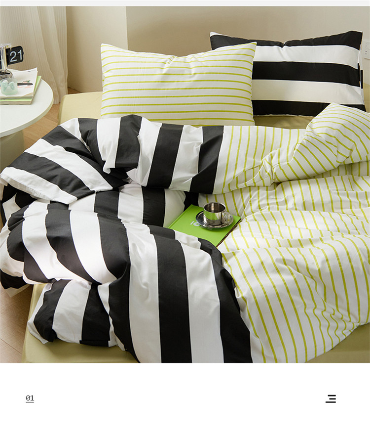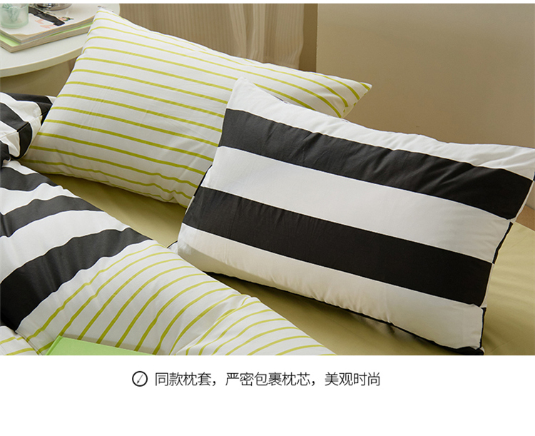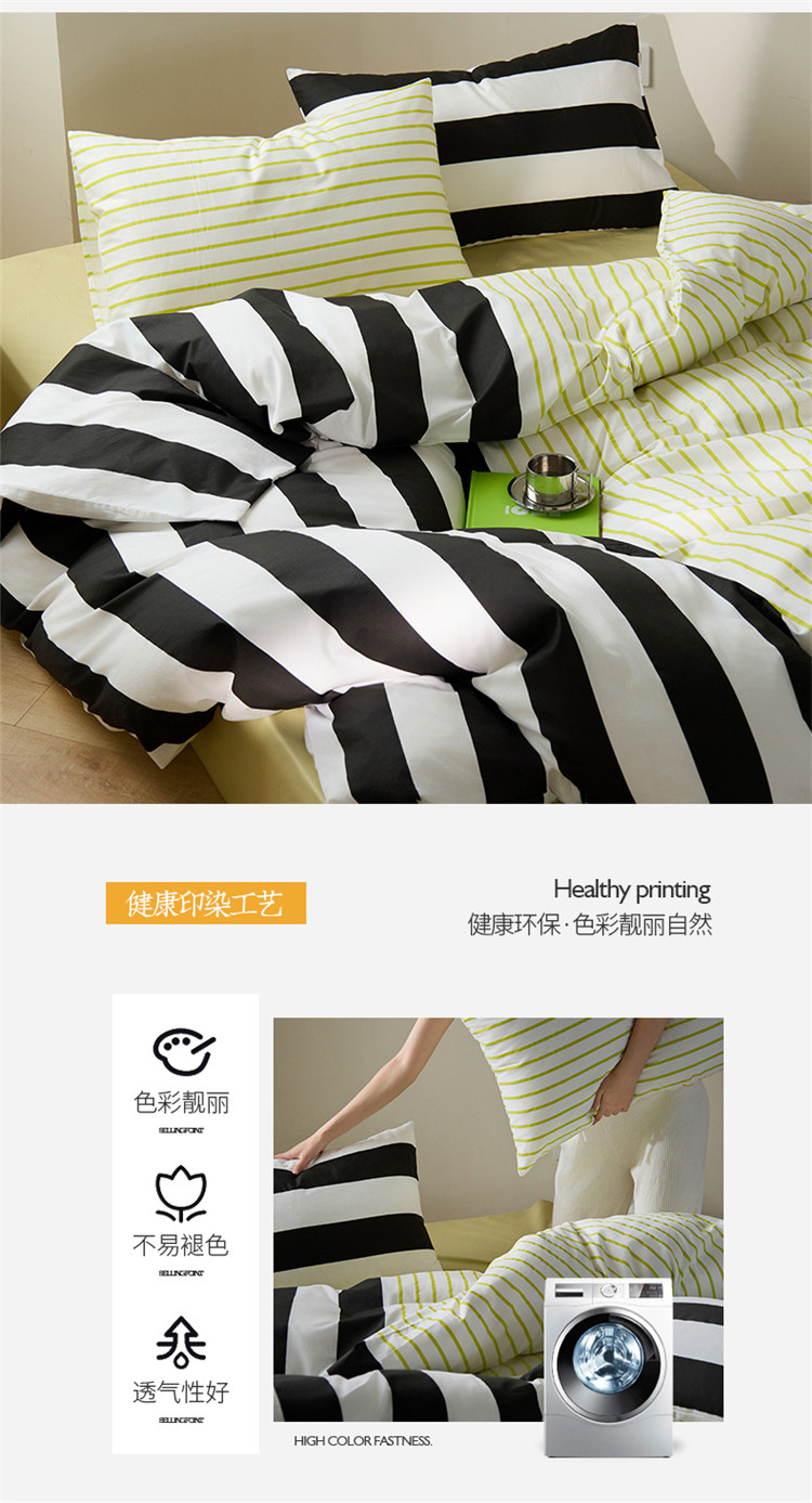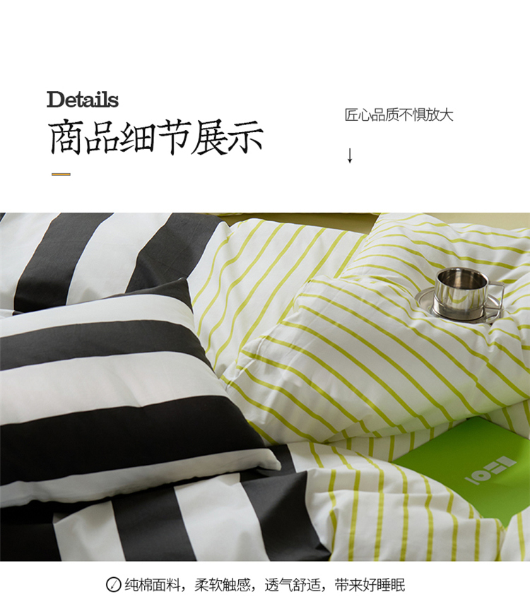 商品名称:桃子 新款ins博主大版简约几何条纹轻奢拼接条纹纯棉四件套 棉大版-绿黑条纹