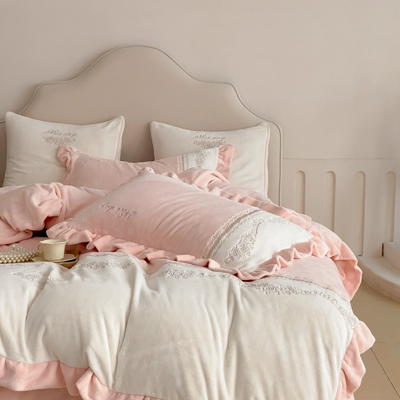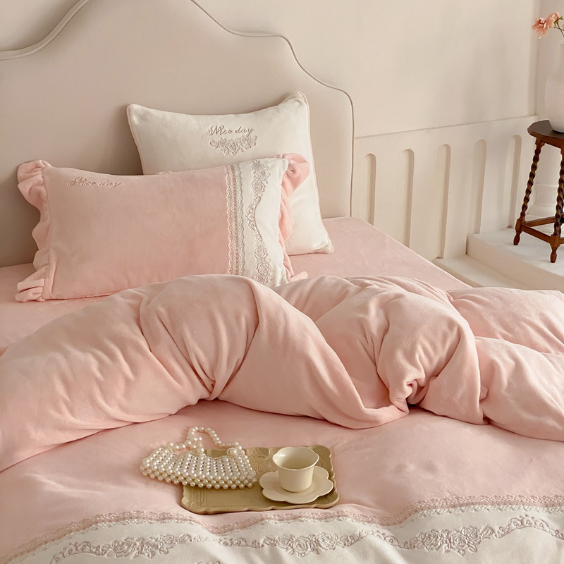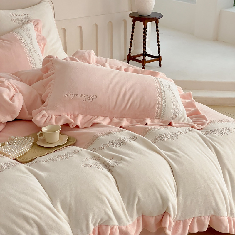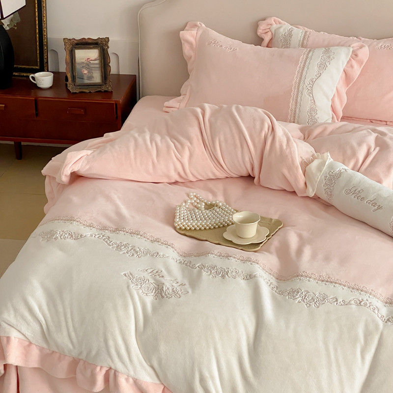 商品名称:馨蕊 2023新款轻奢煦暖绒刺绣四件套 丽娜-蔷薇粉