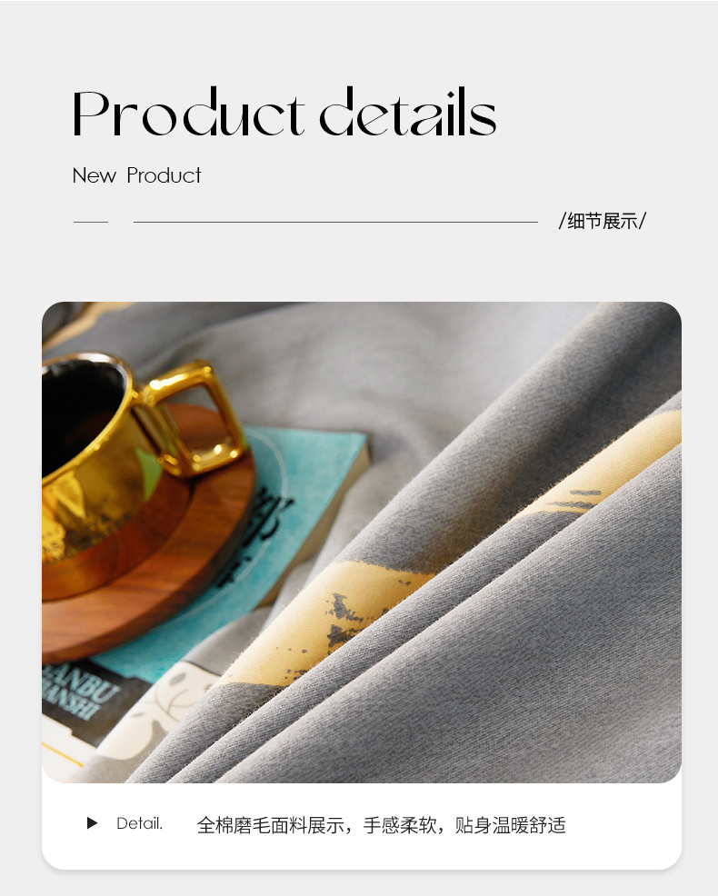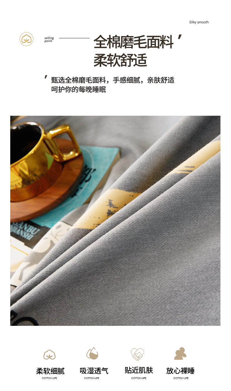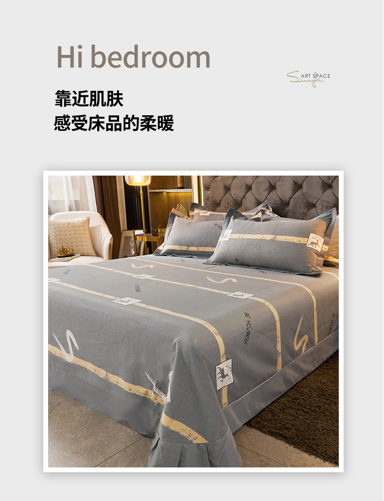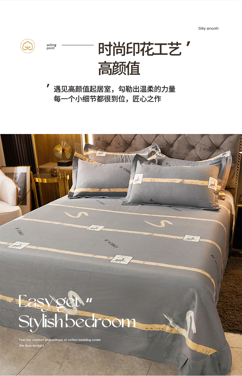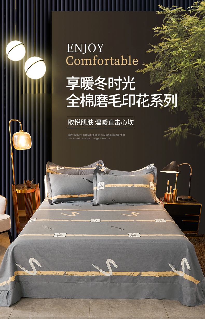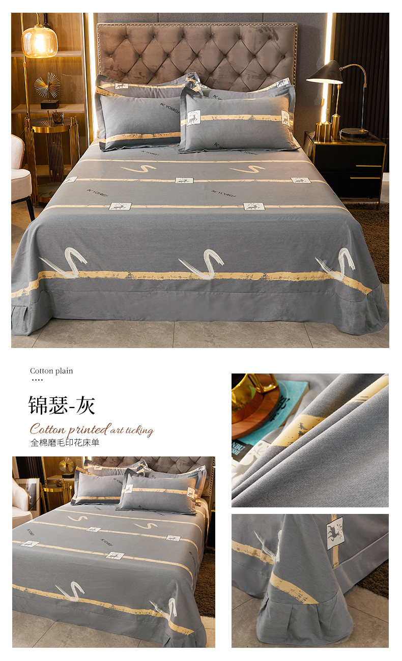 • 91家纺网 家纺一手货源 找家纺 伊而梦 2023新款全棉磨毛印花四件套系列单品床单 锦瑟-灰