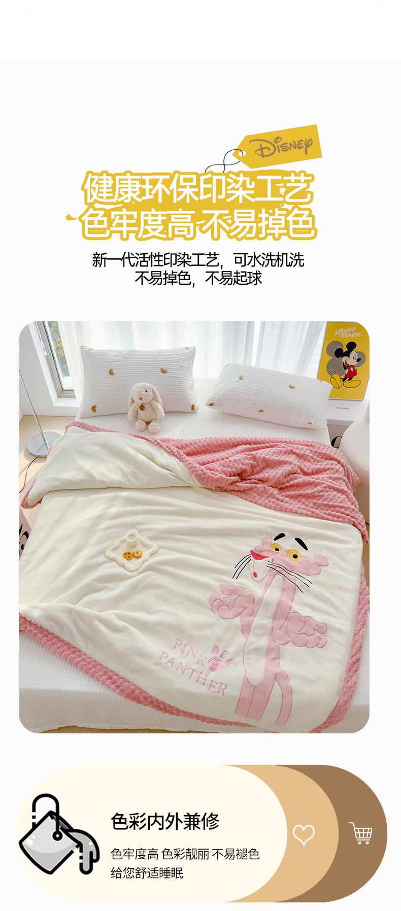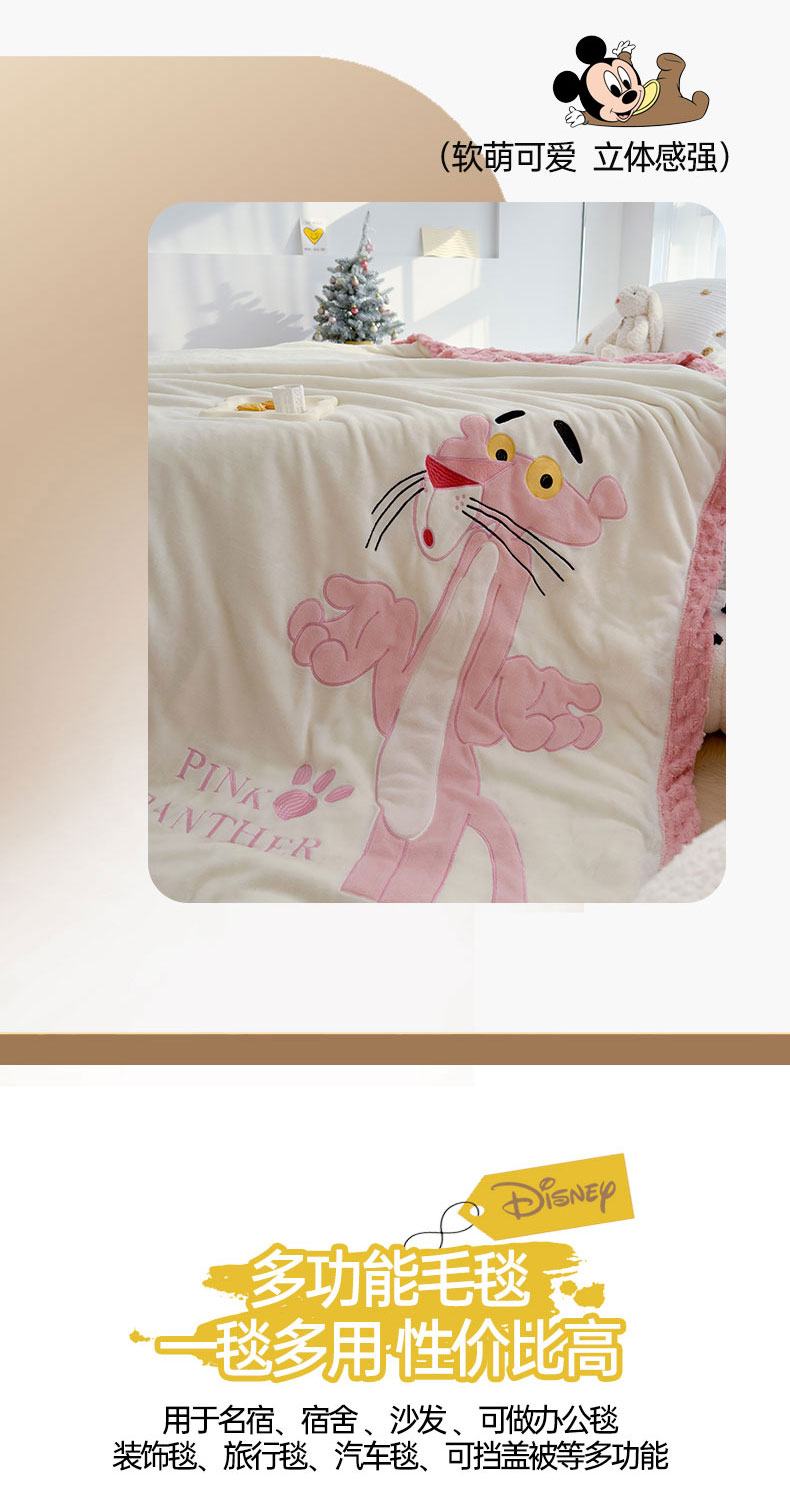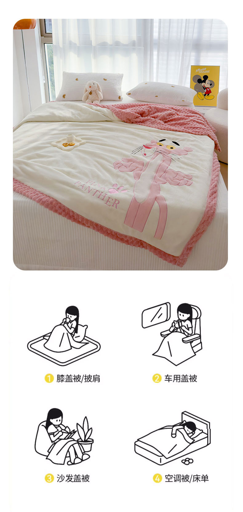 商品名称:灰鲸 2025新款牛奶兔兔绒多功能贴布绣盖毯(带拉链) 粉红顽皮豹