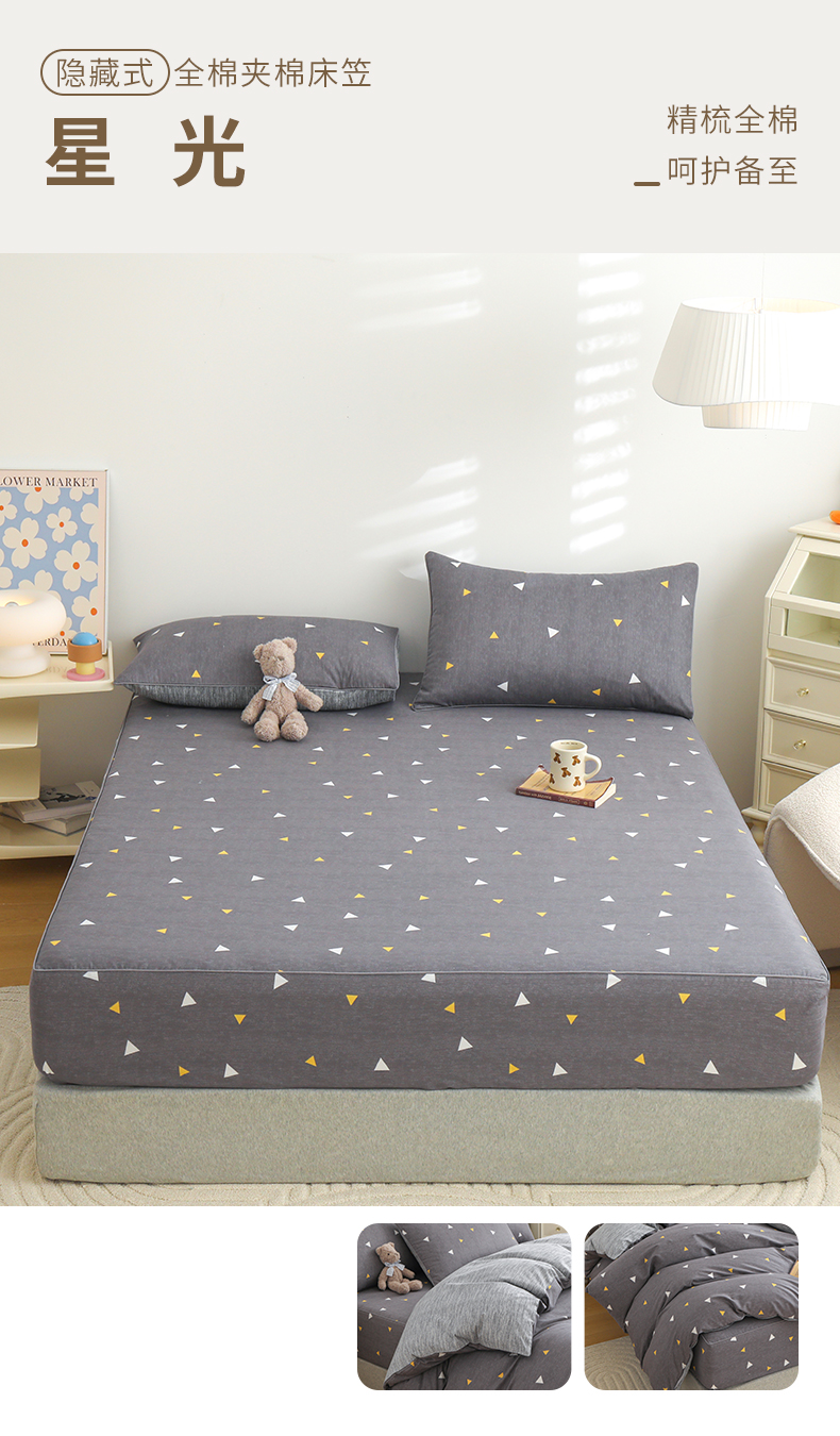 商品名称:元元 2024新款13372加密精梳全棉单品套件系列-单床笠 星光