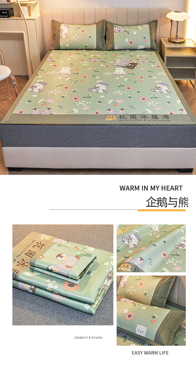 商品名称:鑫姿席业 2025新款A类抗菌冰藤席 企鹅与熊