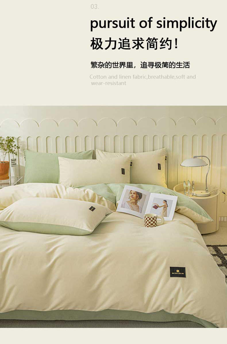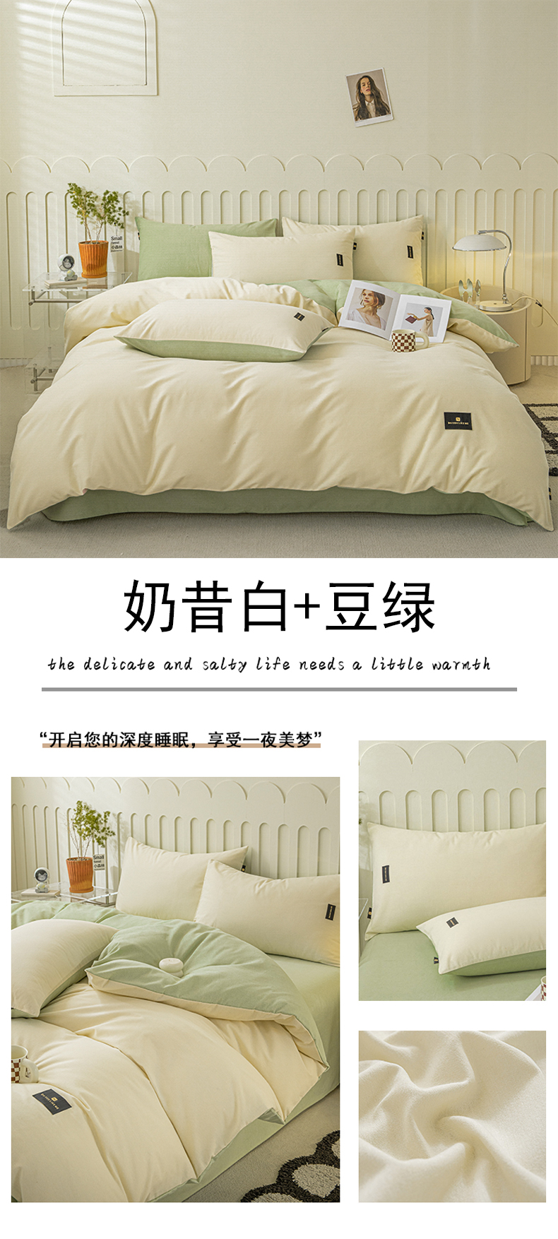 当前位置: 91家纺网 > 商品网购 > 床品套件 > 四件套 > 磨毛活性四件套 > 涵宸家纺 棉磨毛-纯色织标-四件套(含单品) 奶昔白+豆绿
