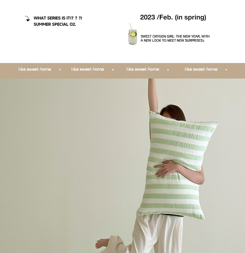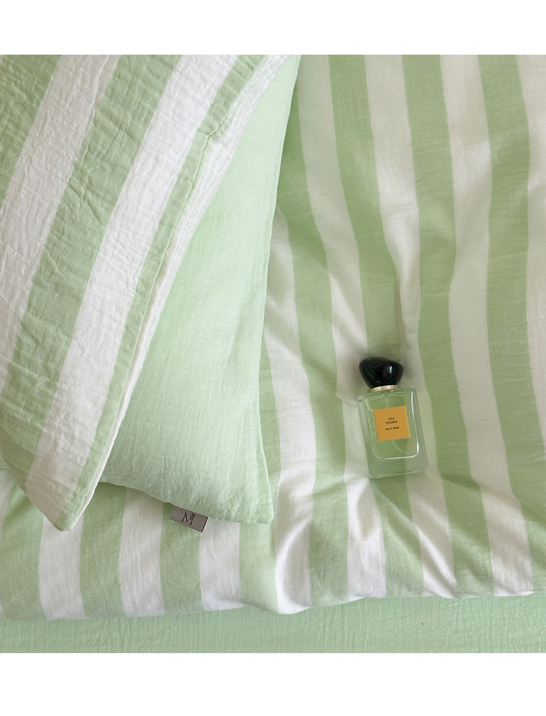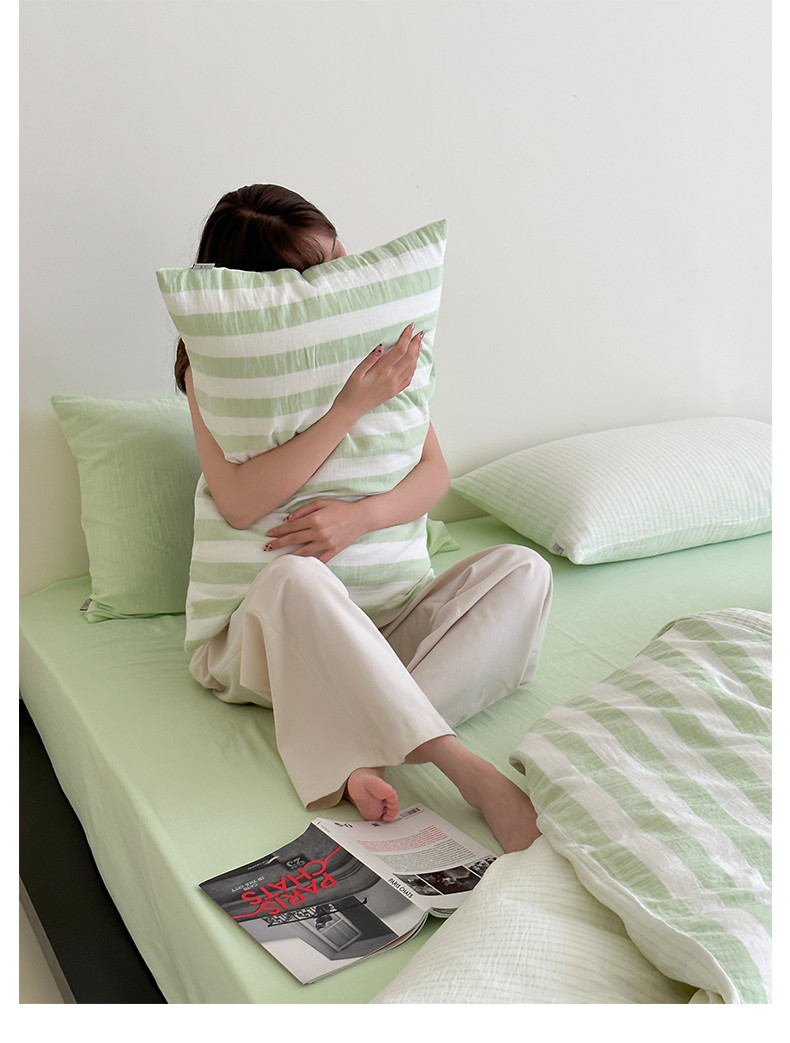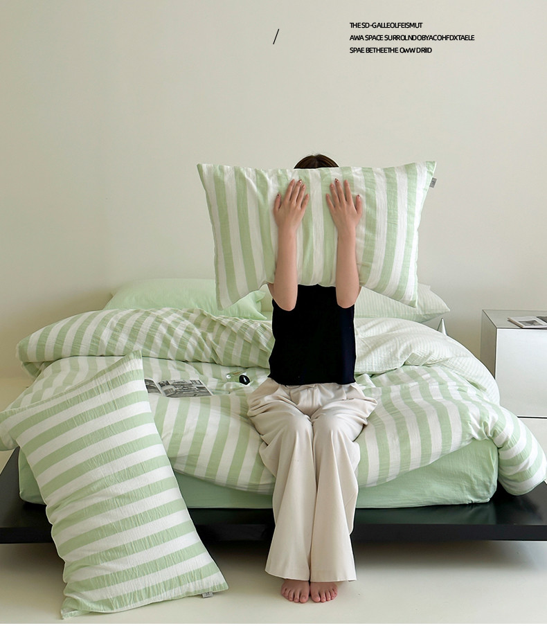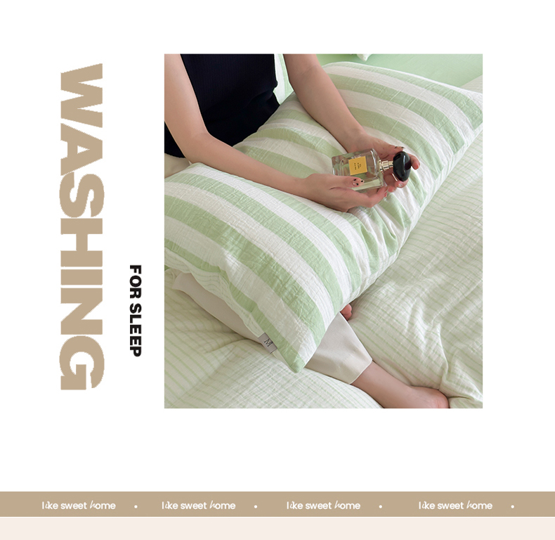 玛奇朵 2023新款色织双层皱纱-韩系条纹四件套 韩系条纹-青提绿