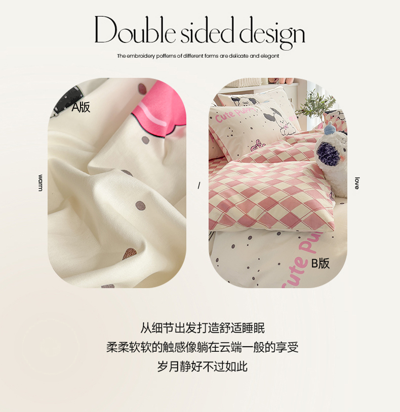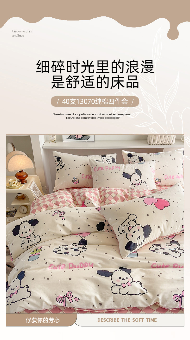 商品名称:简宜家居 2025新款40支13070纯棉卡通系列四件套 欢乐萌狗