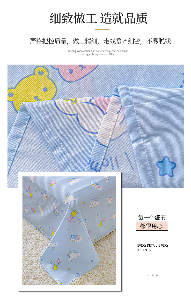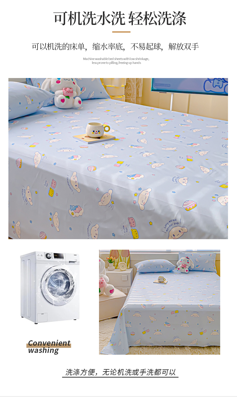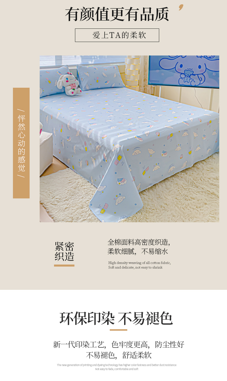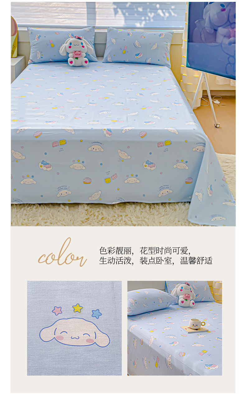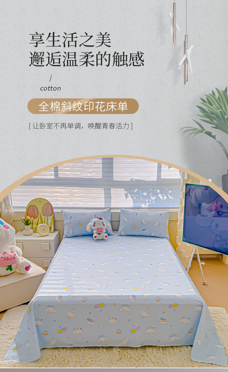 (总)金丝鸟家纺 2025新款三丽鸥系列全棉斜纹13370单品床单,波点美乐蒂,彩虹大耳朵狗,条纹库洛米,晚安kt