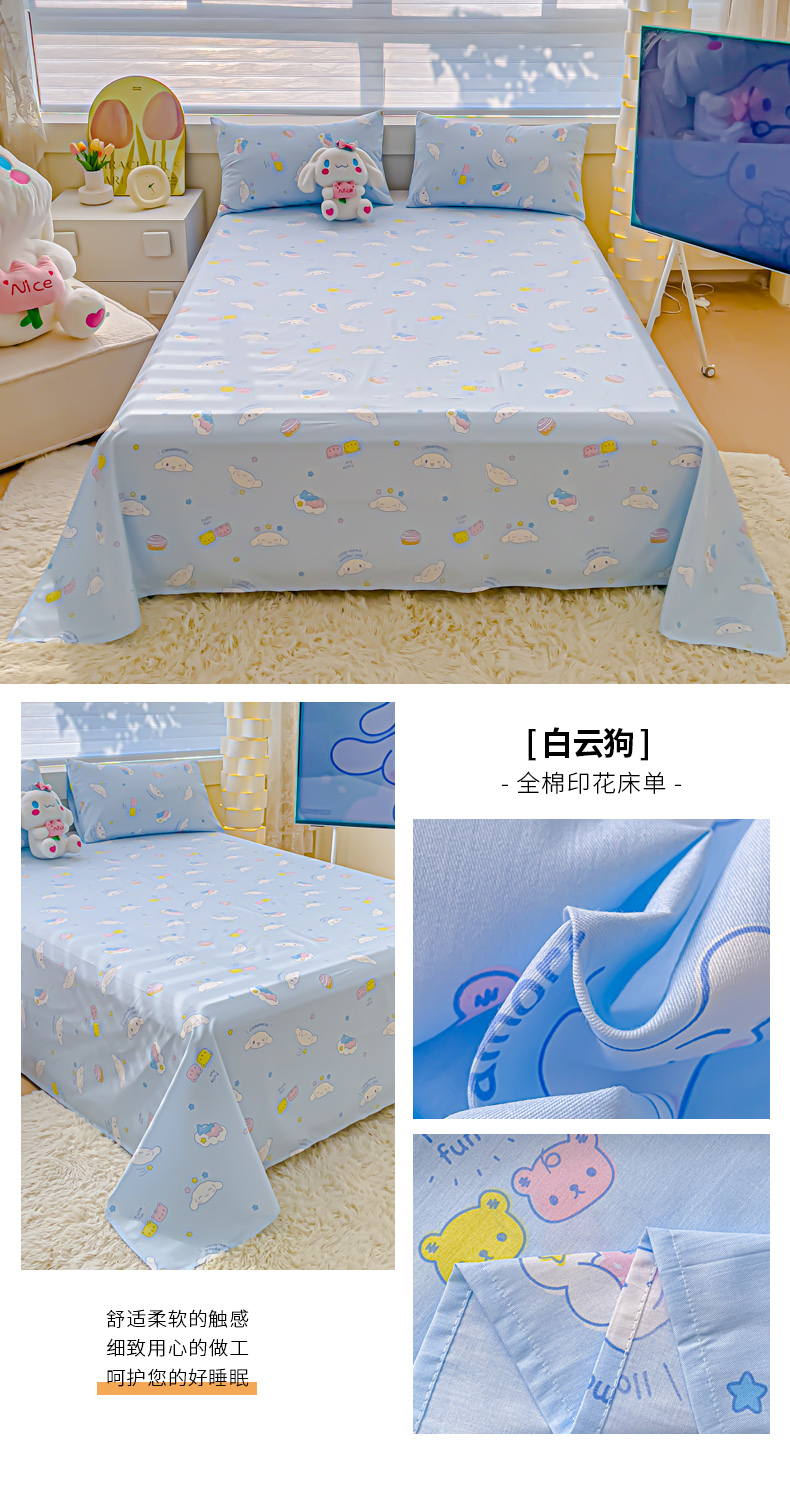 商品名称:金丝鸟家纺 2024新款全棉三丽鸥系列床单 白云狗