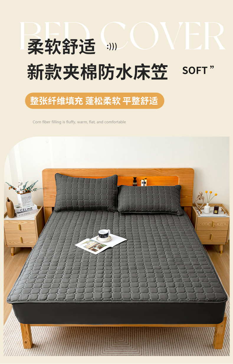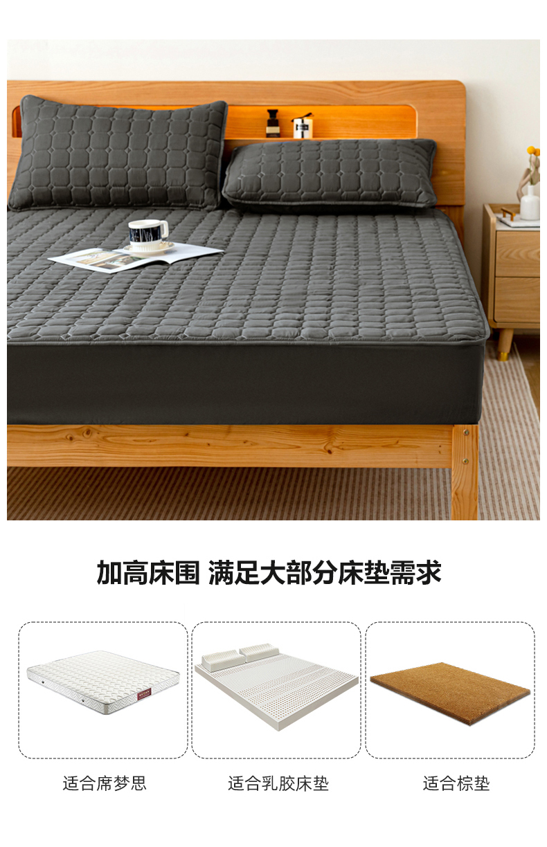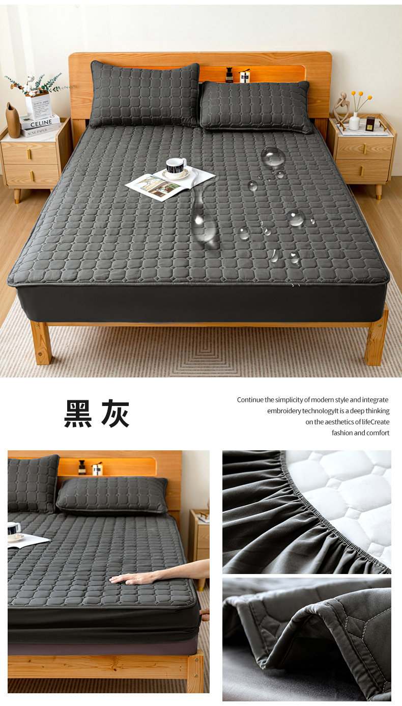 商品名称:宇淳国际 2024新款夹棉防水床笠 黑灰