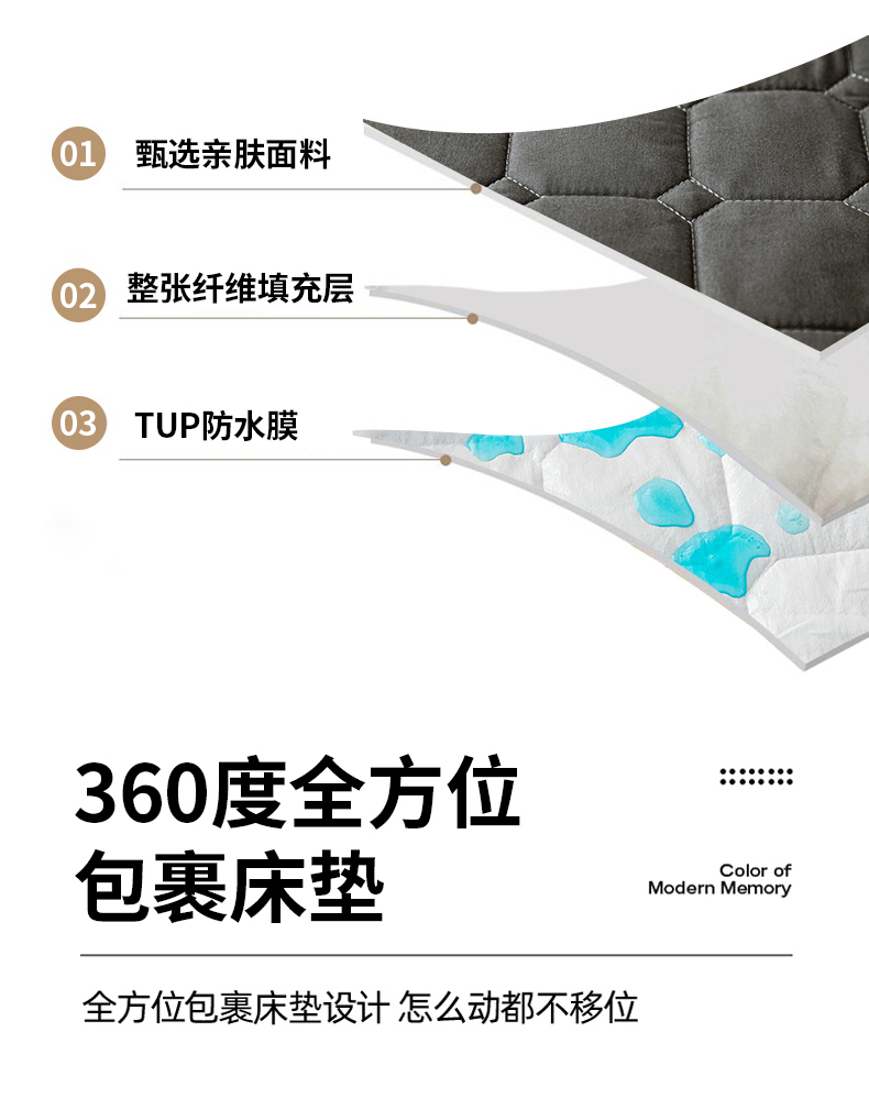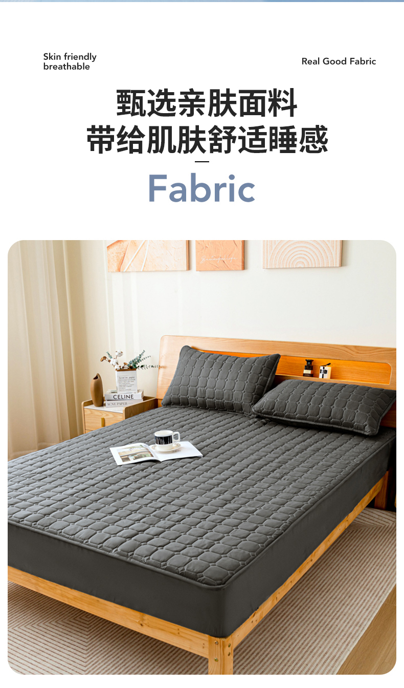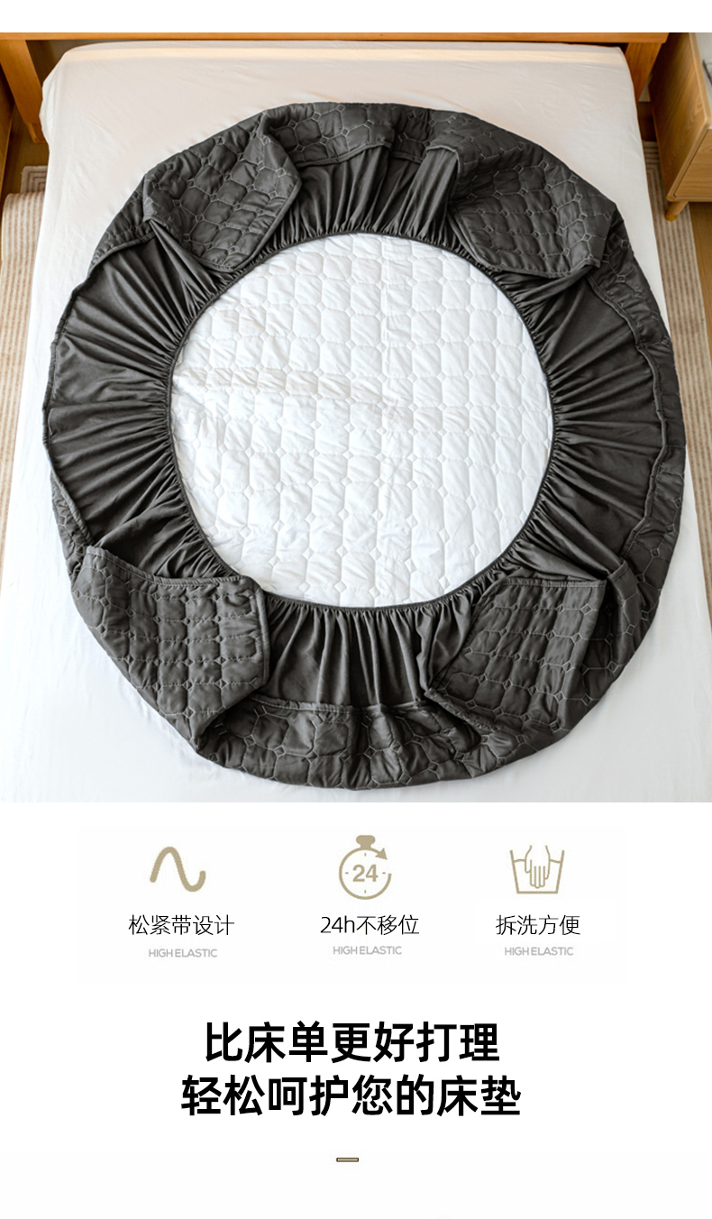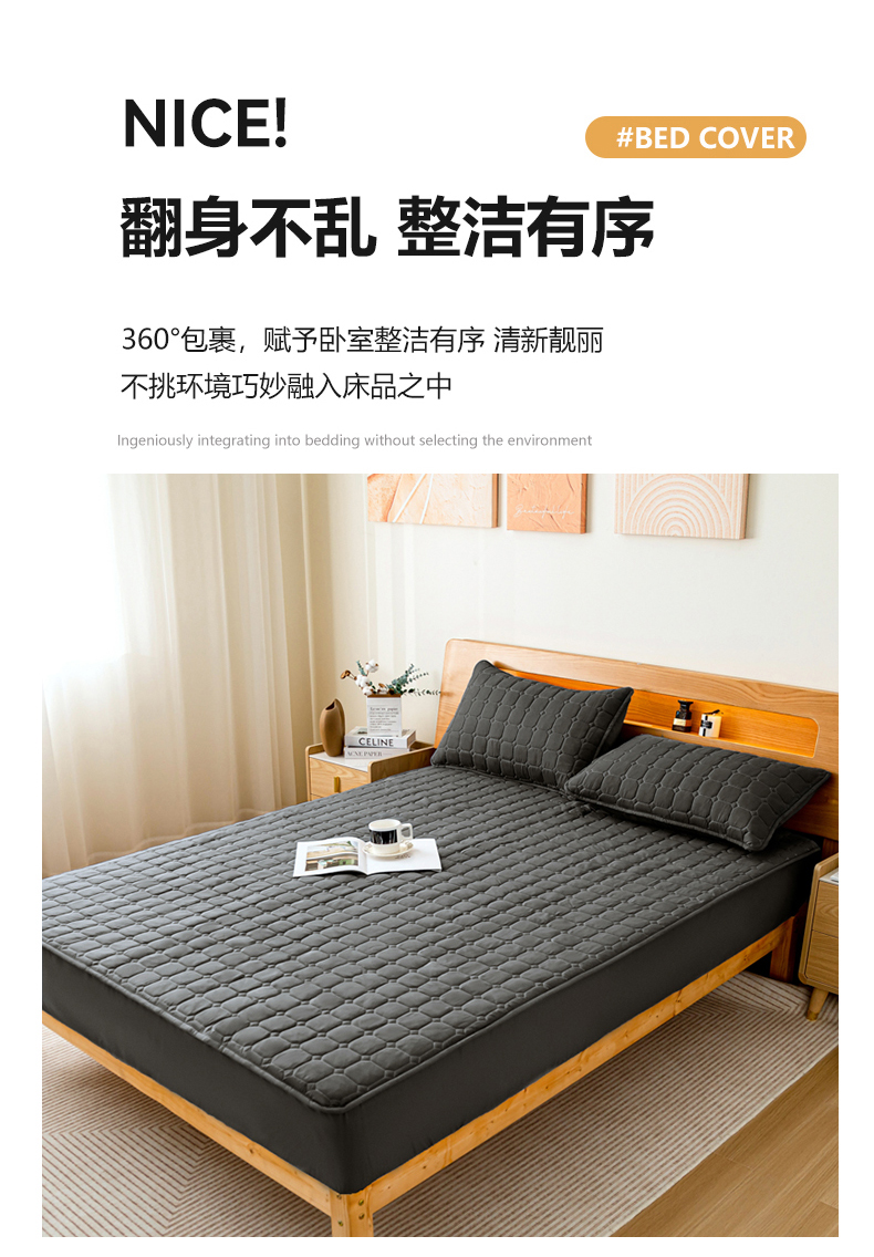 商品名称:宇淳国际 2024新款夹棉防水床笠 黑灰