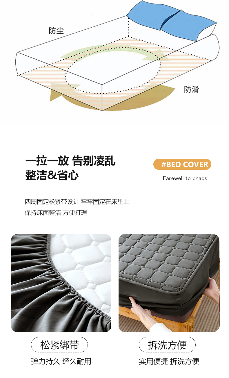 (总) 宇淳 2025跨境外贸水洗棉夹棉单件床签床垫保护套四季通用防滑床罩梦思床垫保护罩三件套非全棉,黑灰,黑色,丈青,棕色,白色,卡其,奶黄,浅灰,深灰,深蓝,水绿,天蓝,玉色,草绿,深豆沙,浅粉