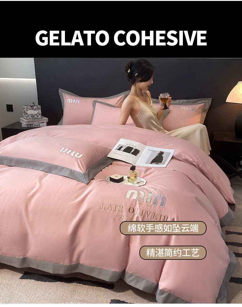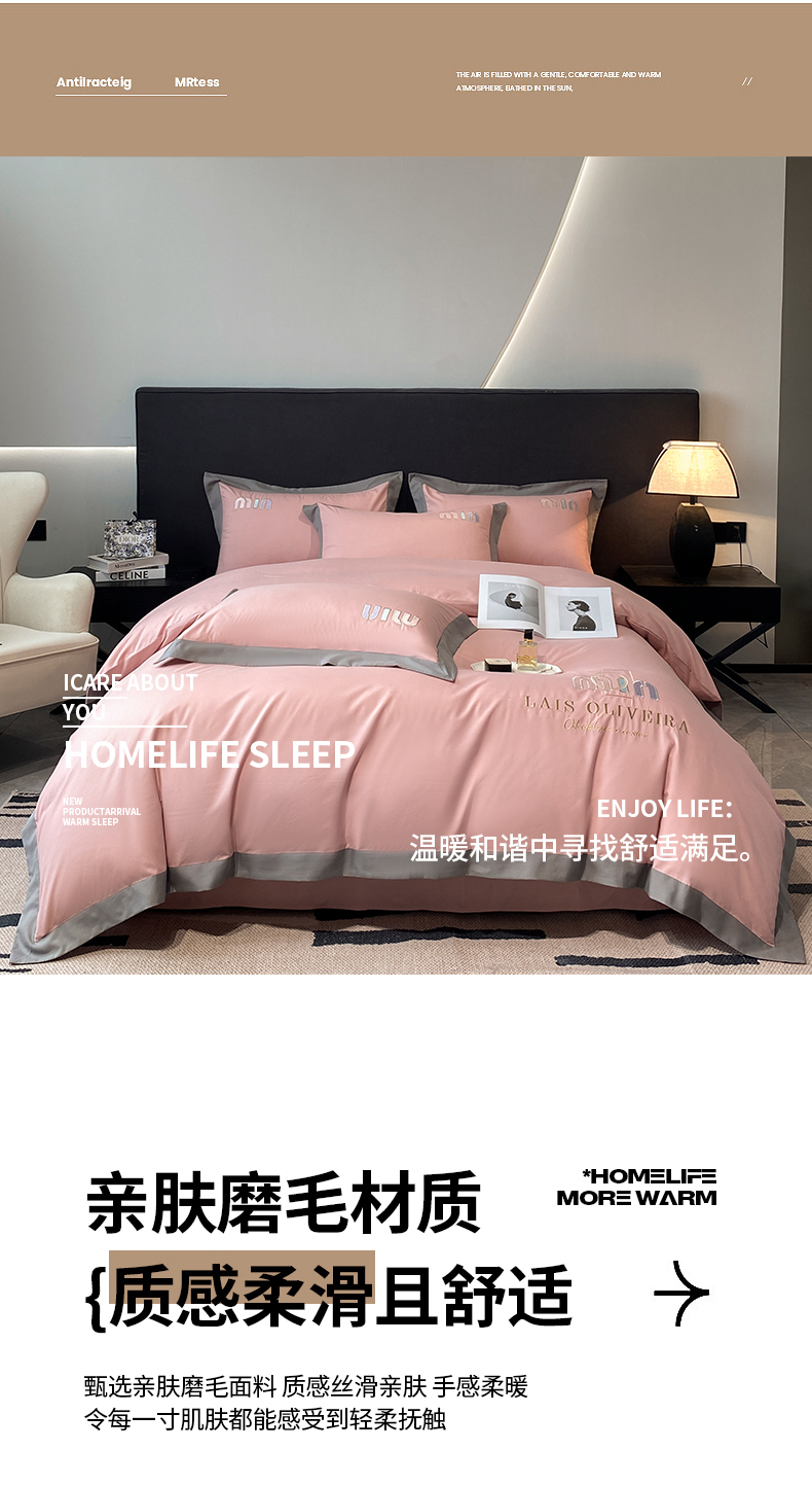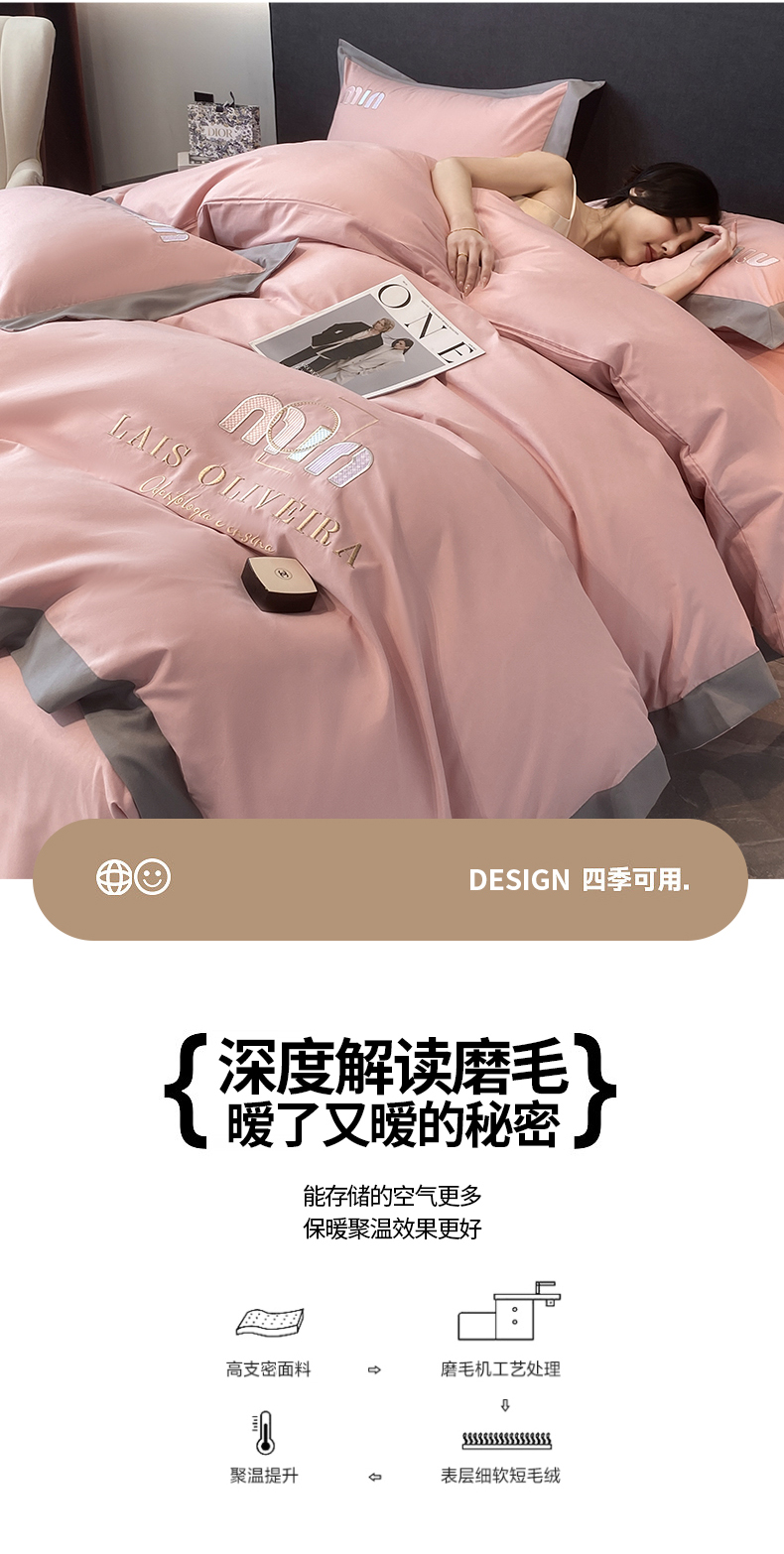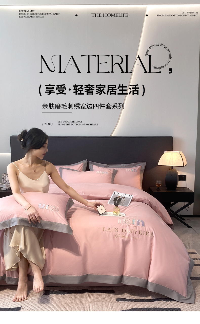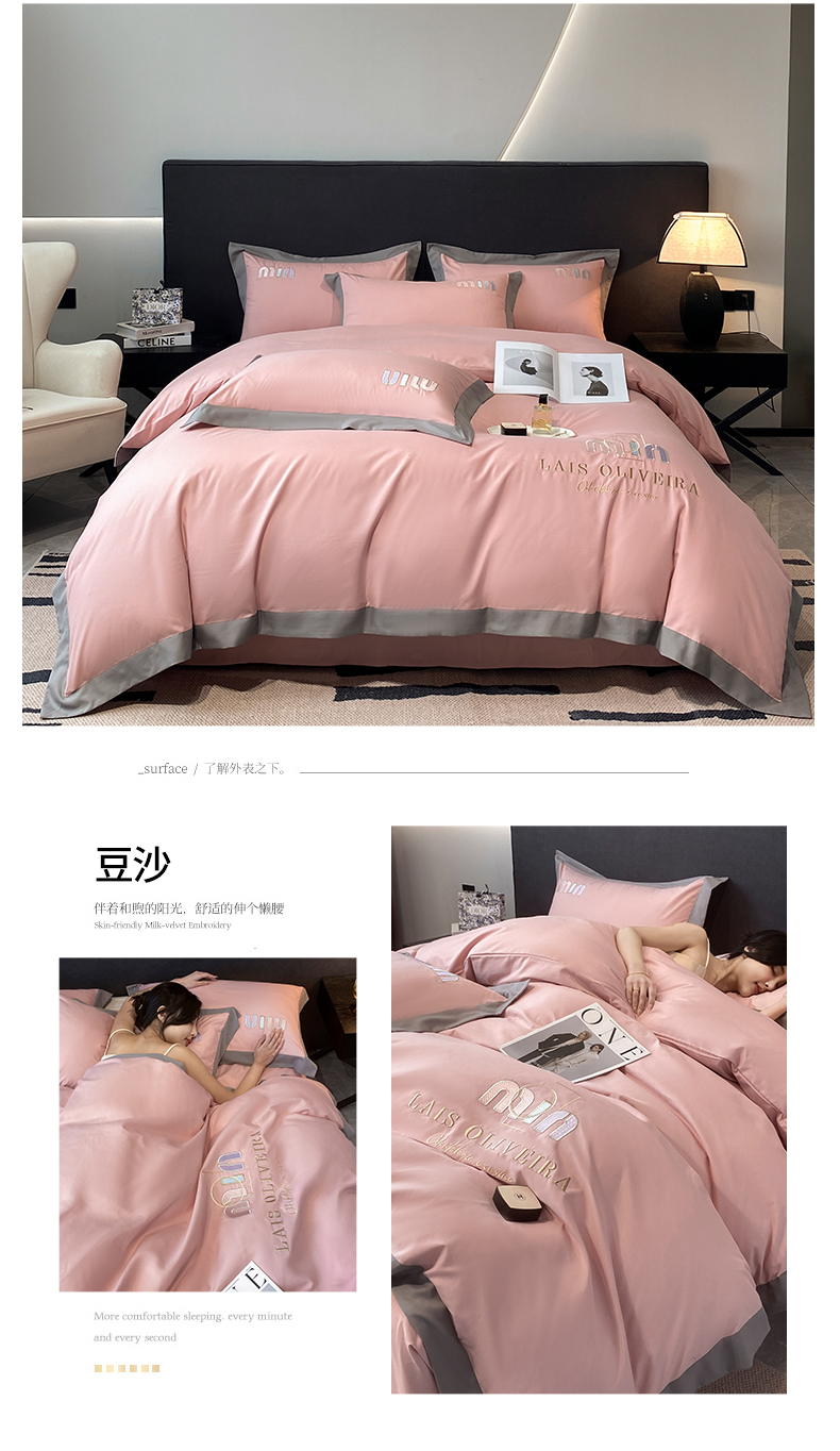 (总)遇见家居生活馆 2025新款A类牛奶绒玛利亚绒宽边四件套(控价:标准178,加大188,床笠款183),靓粉+星辰灰,丁香紫+星辰灰,清澈蓝+星辰灰,奶昔白+亚麻驼,经典灰+香槟,宾利蓝+星辰灰