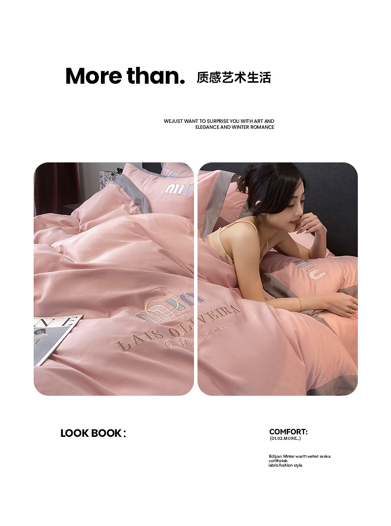 遇见家居生活馆 2024新款亲肤磨毛刺绣四件套-克洛伊 克洛伊-浅豆沙