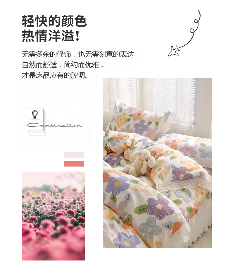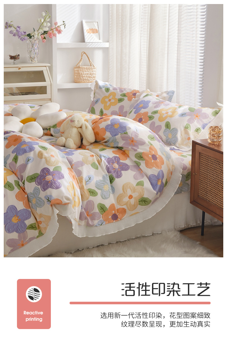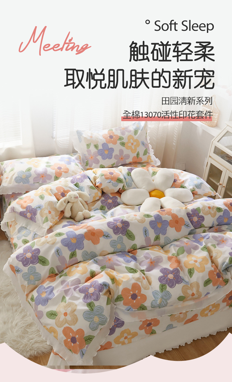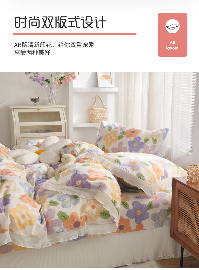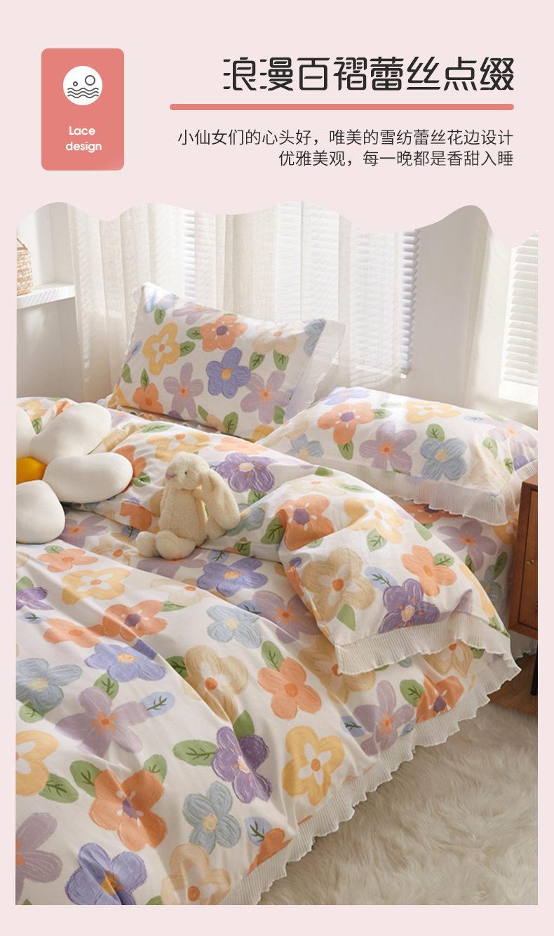 舒居家纺 2024新款13070全棉花边被套单品 幸福香氛