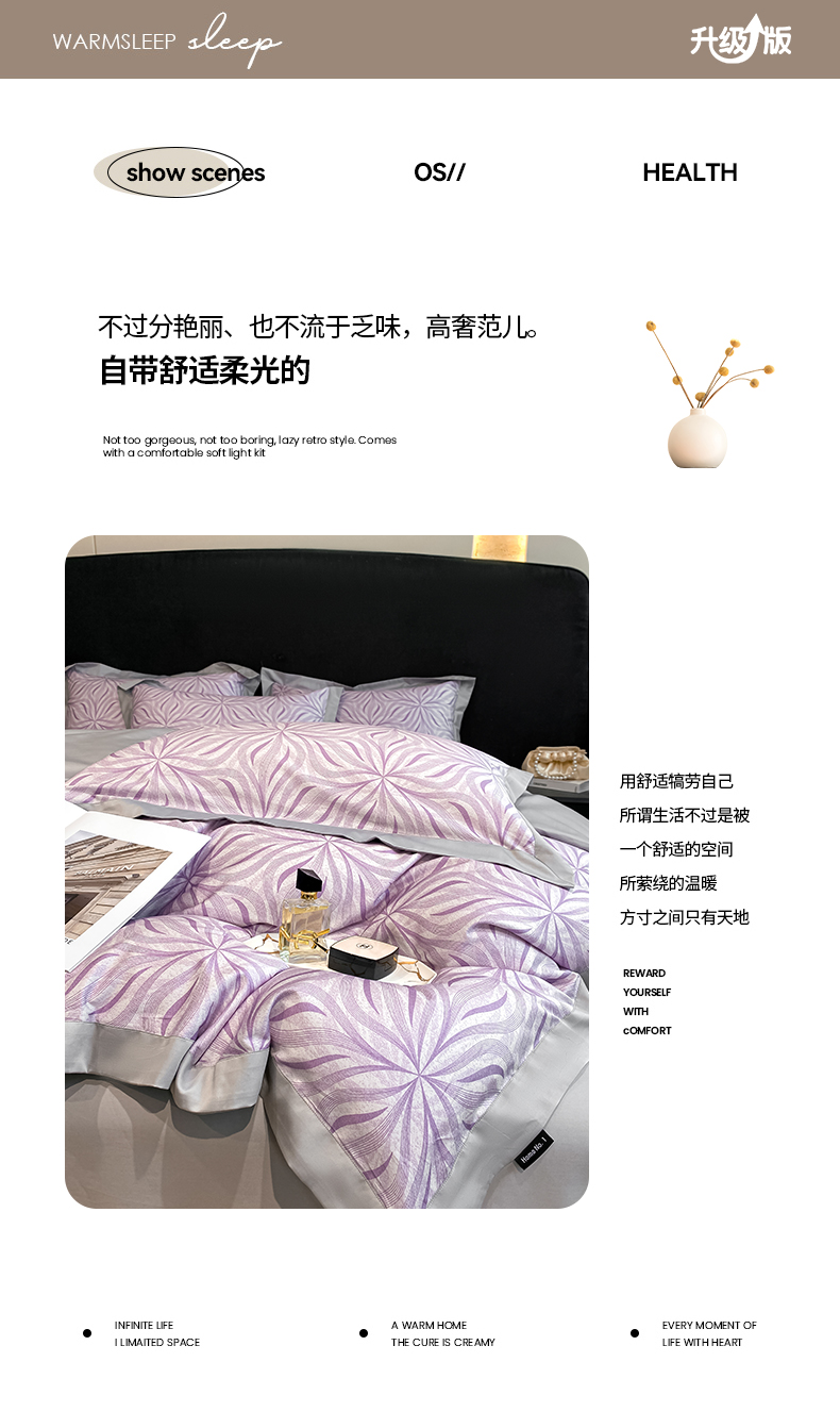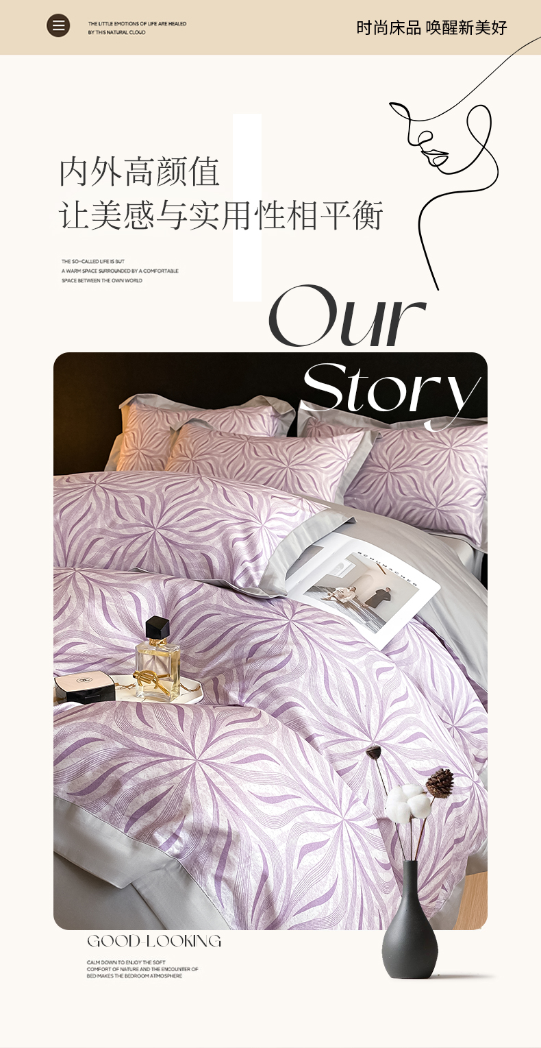 商品名称:家居1号 2024新款纯棉活性数码印花四件套-米娅 米娅 -香芋紫