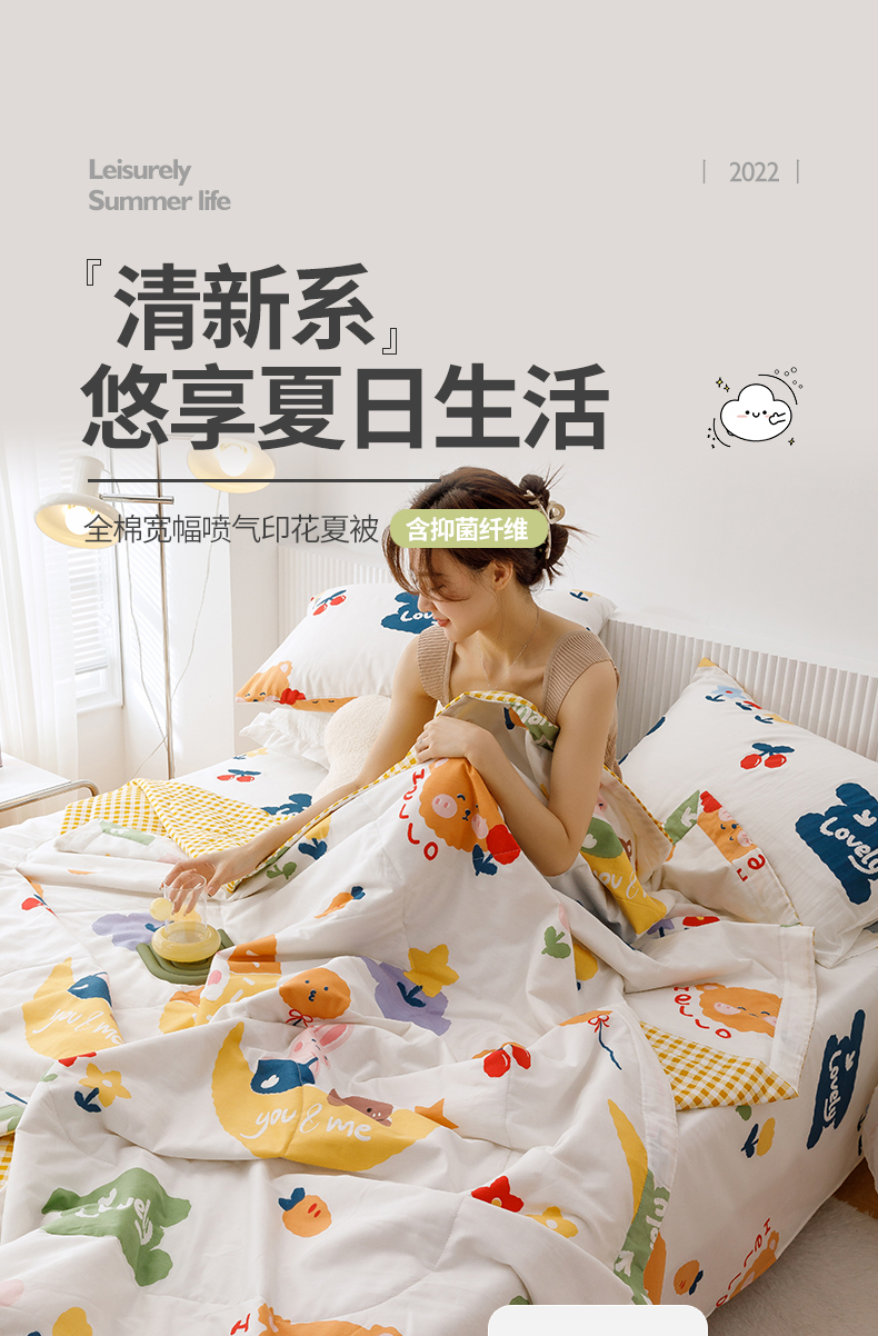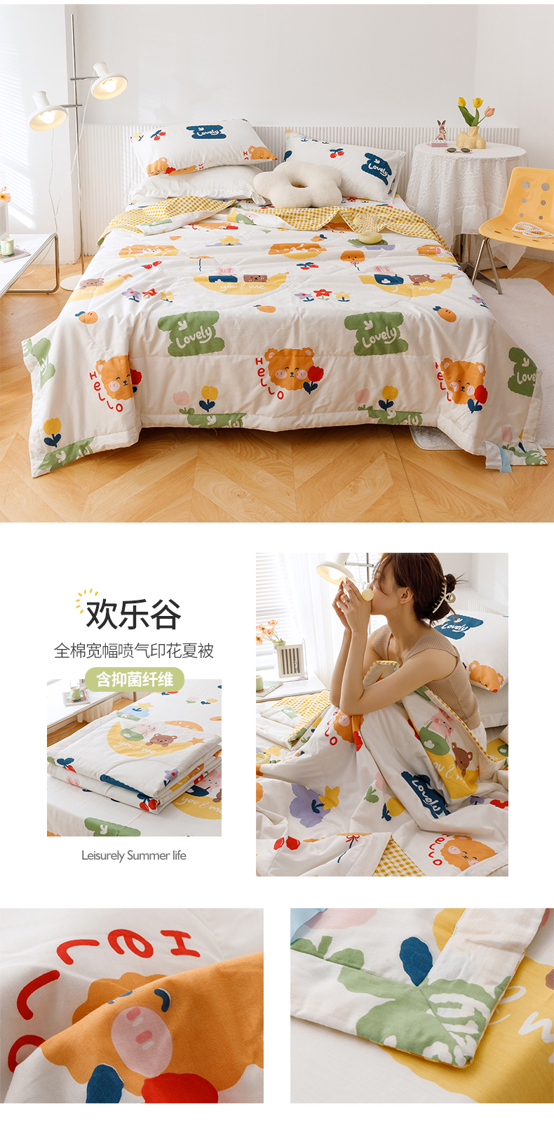 莱宁被业 2024新款全棉宽幅喷气印花夏被 欢乐谷