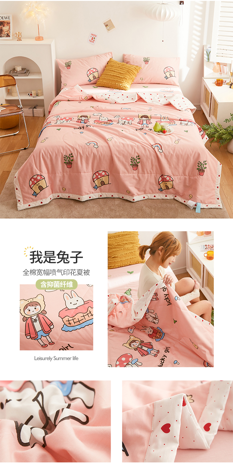 莱宁被业 2024新款全棉宽幅喷气印花夏被 我是兔子