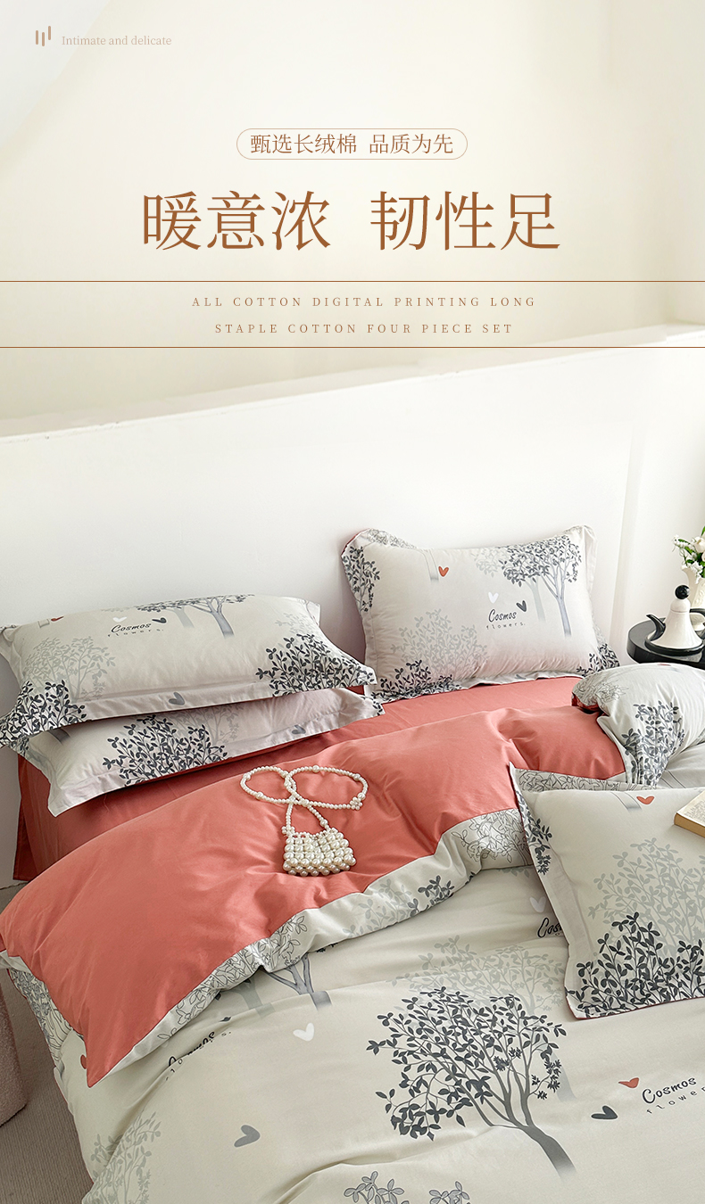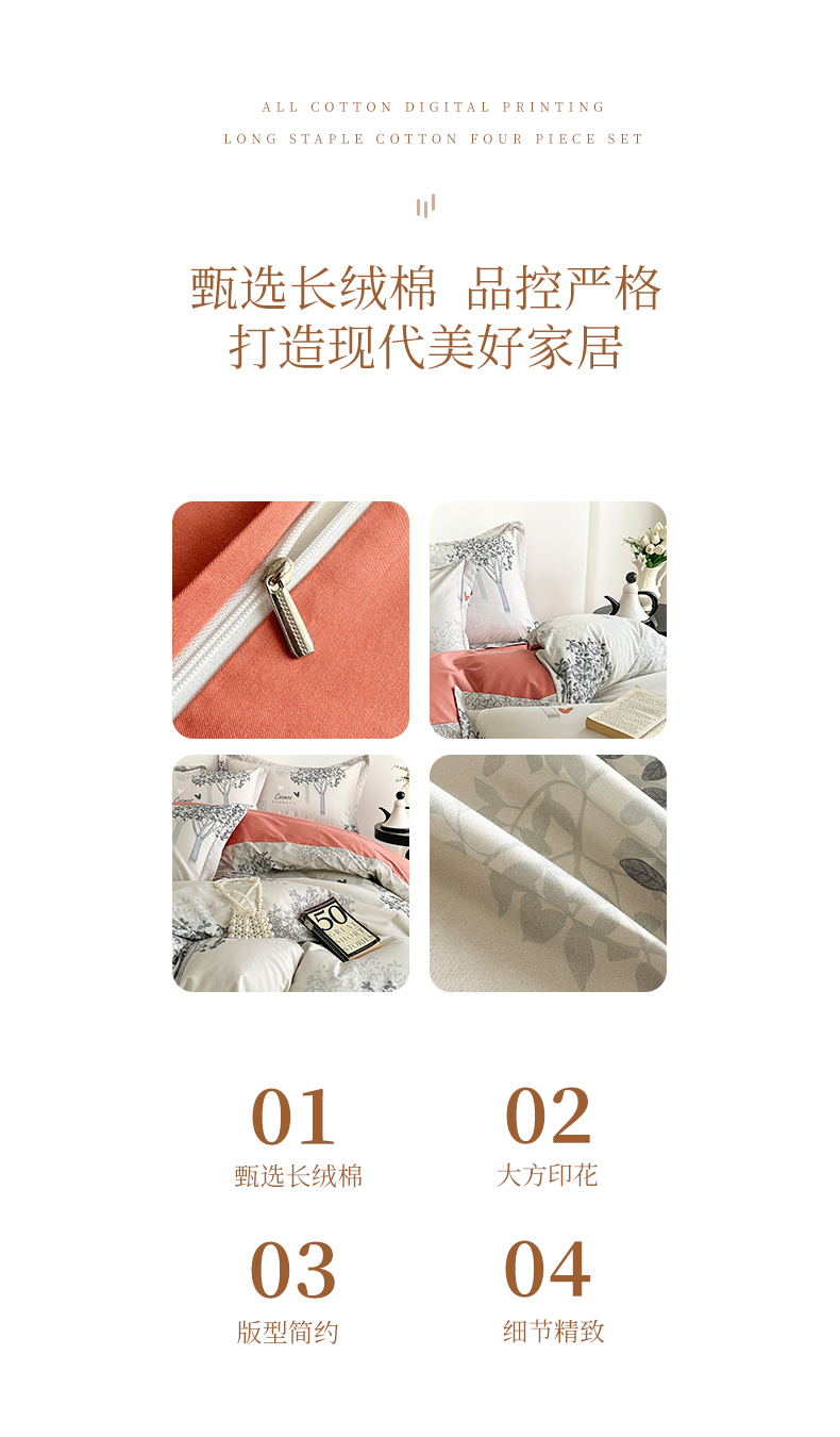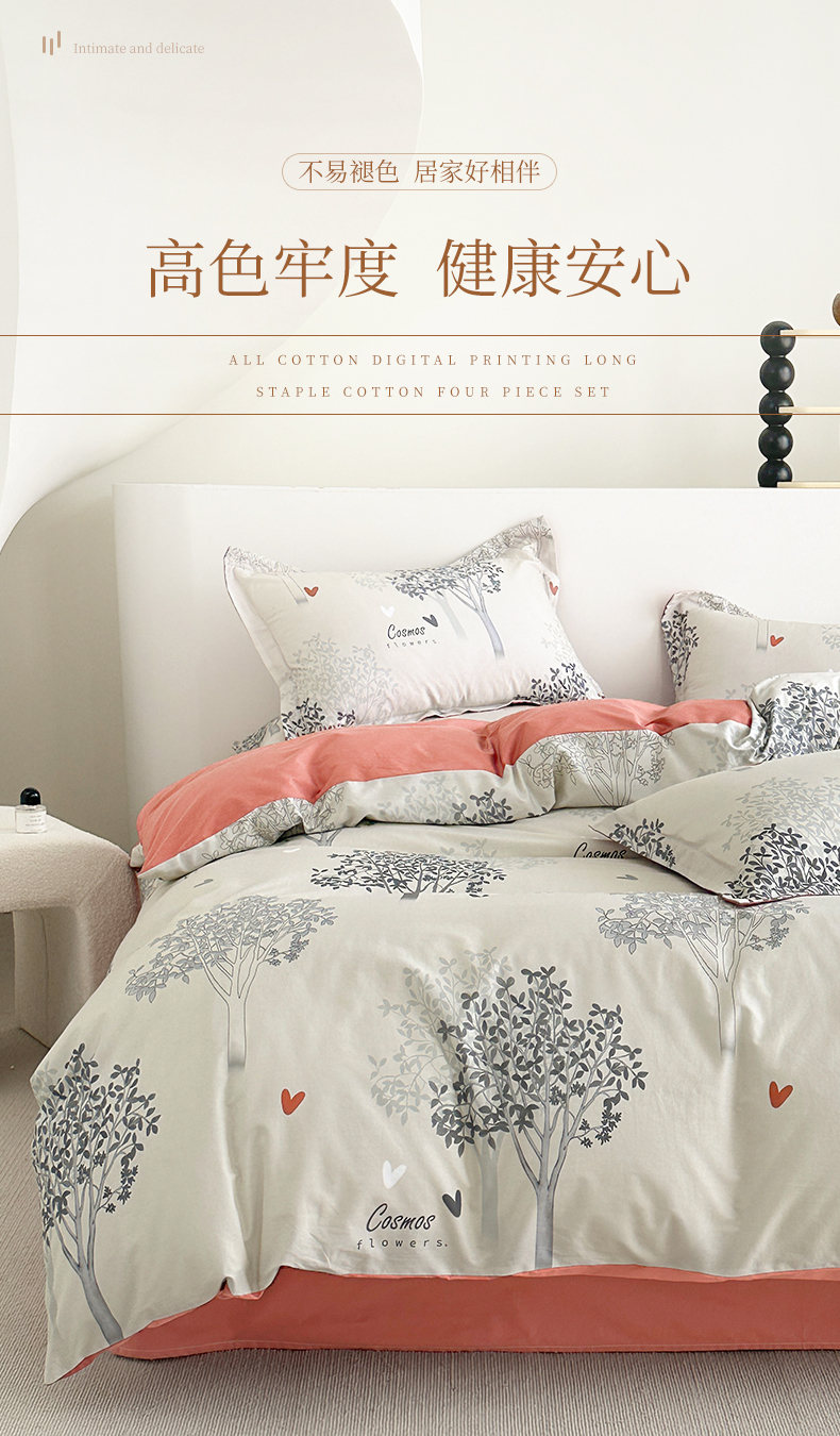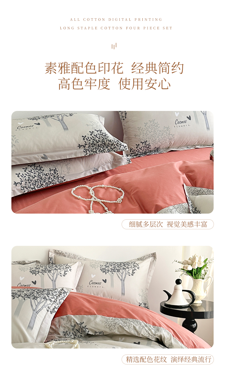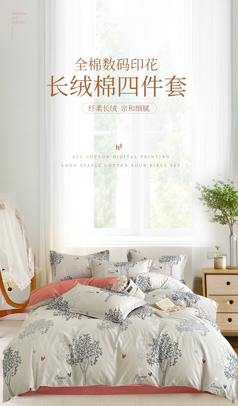 商品名称: 元元被芯 2024新款全棉长绒棉数码印花四件套全棉四件套纯棉四件套 云思木想-灰