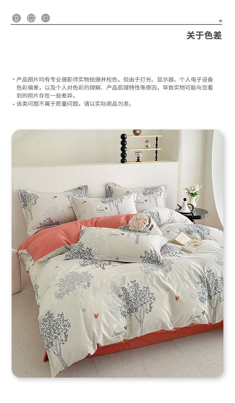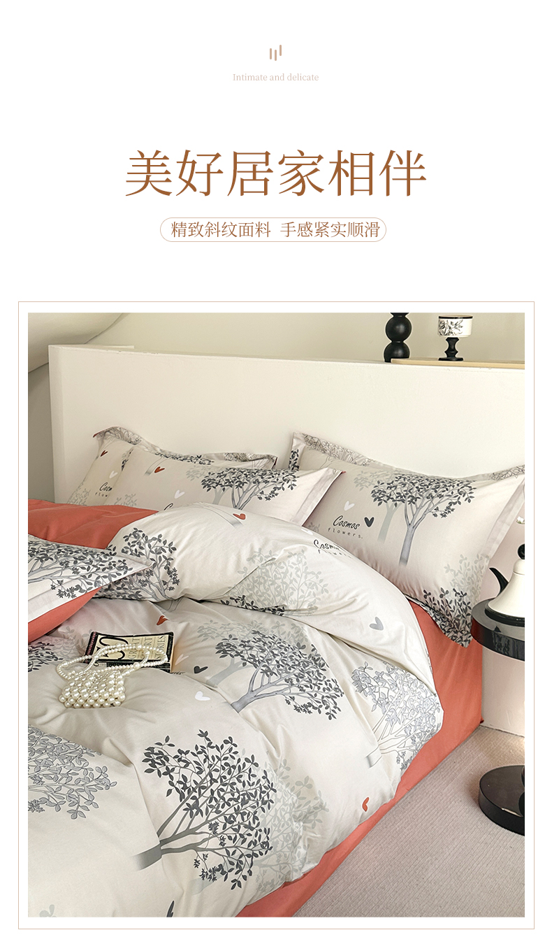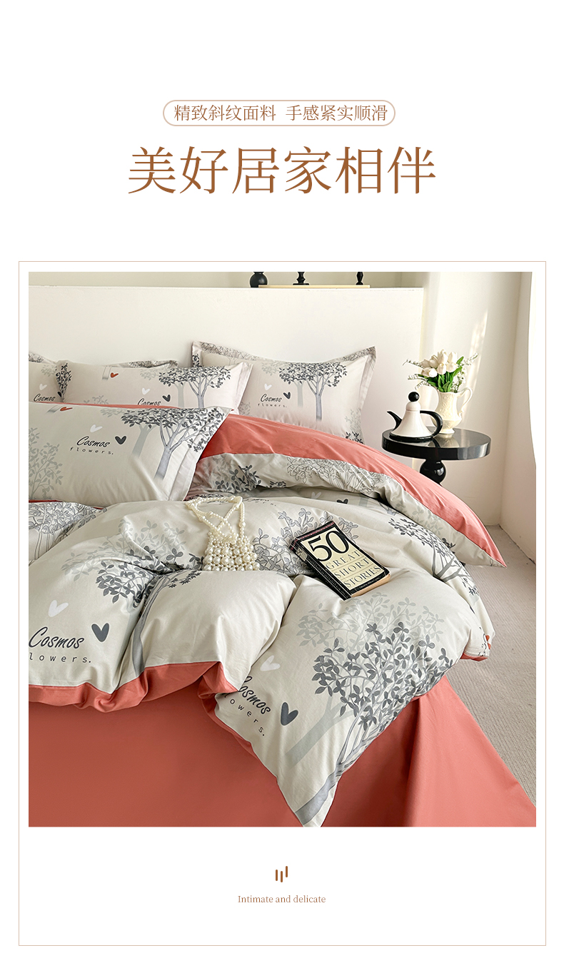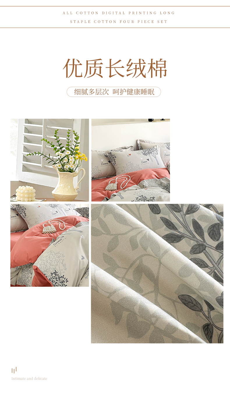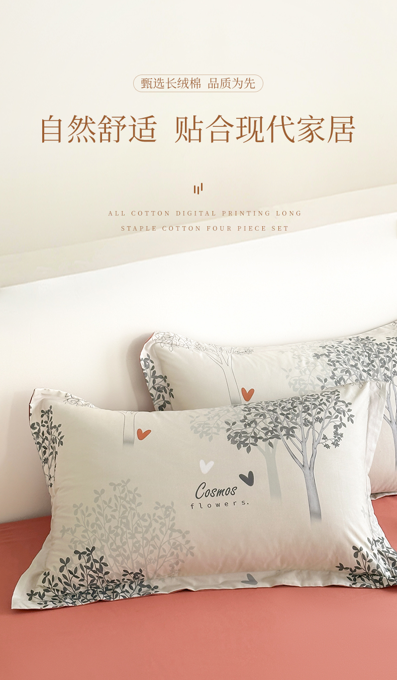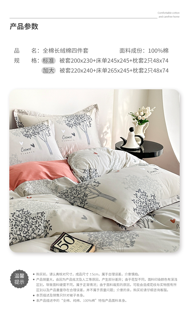 商品名称: 元元被芯 2024新款全棉长绒棉数码印花四件套全棉四件套纯棉四件套 云思木想-灰